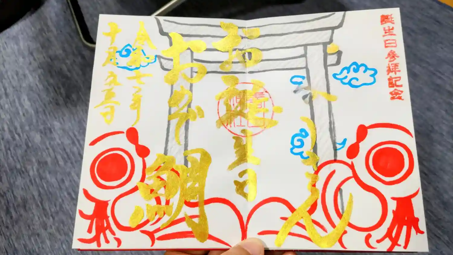 お誕生日御朱印。名前と誕生日をを入れてくださいます。(読めないように加工してます)