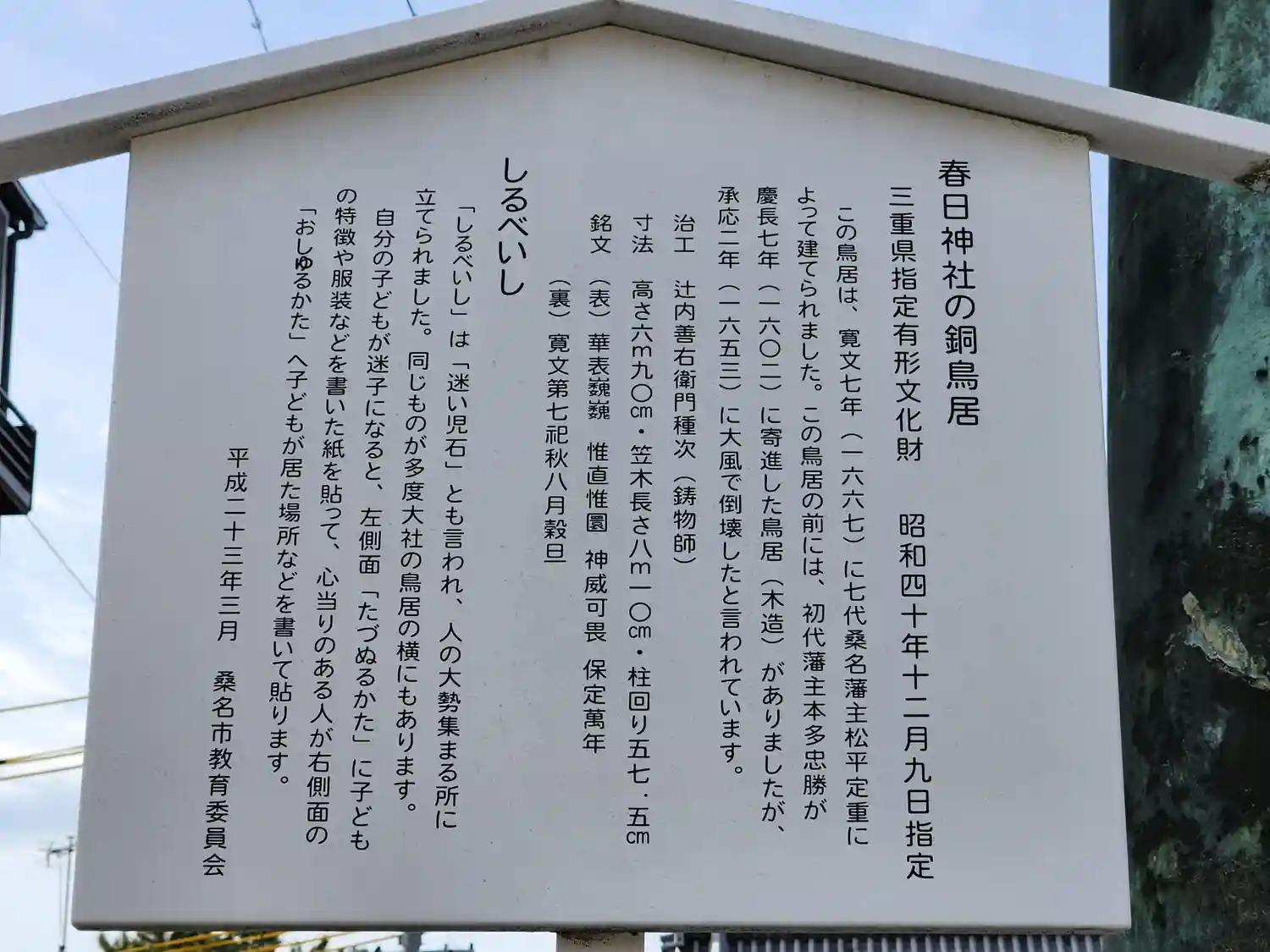 三重県指定文化財「銅鳥居」。