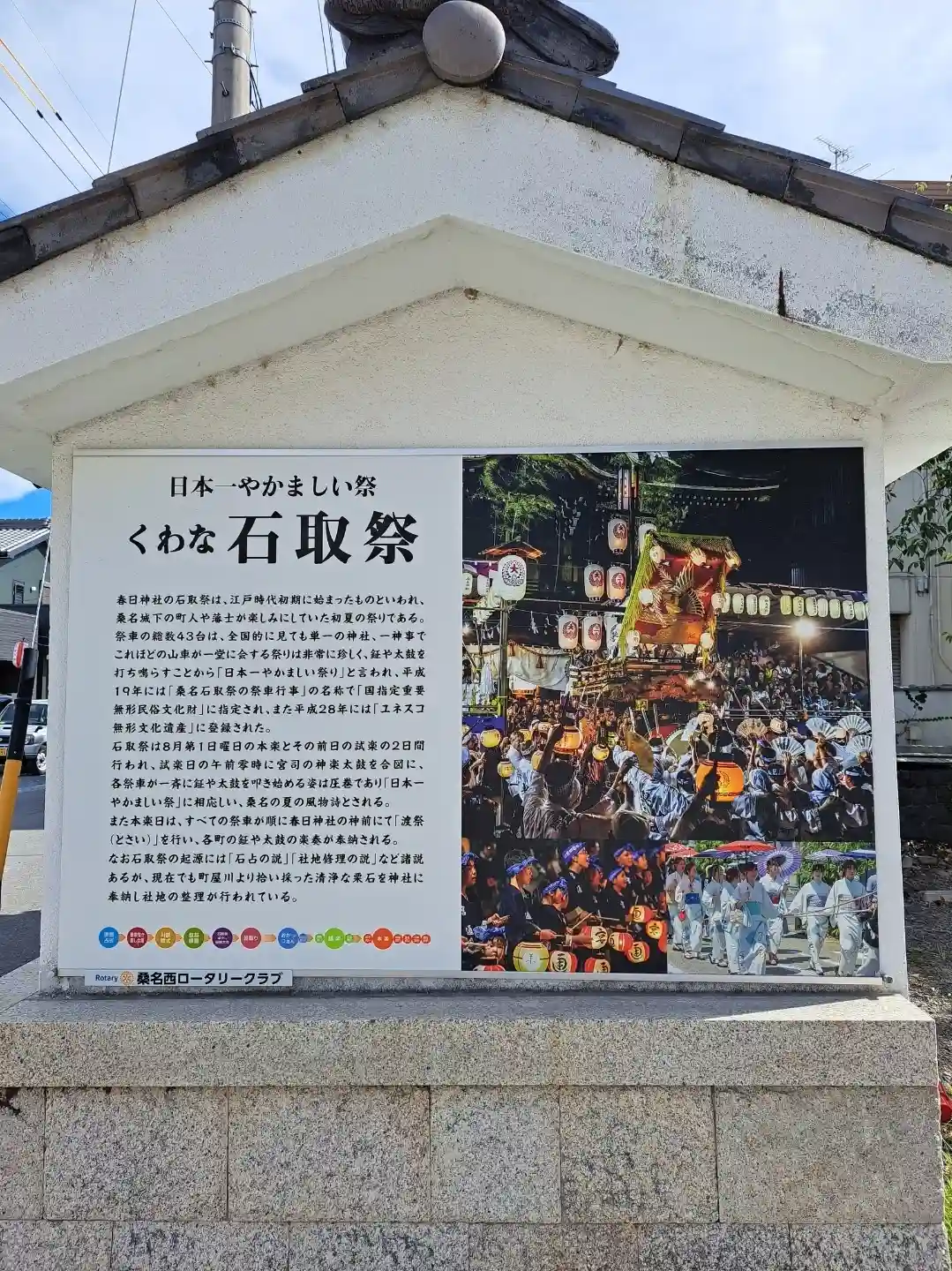 桑名神社と中臣神社の総称。寛文年間鋳造の青銅の大鳥居が残る。天下の奇祭“石取祭”で知られる。