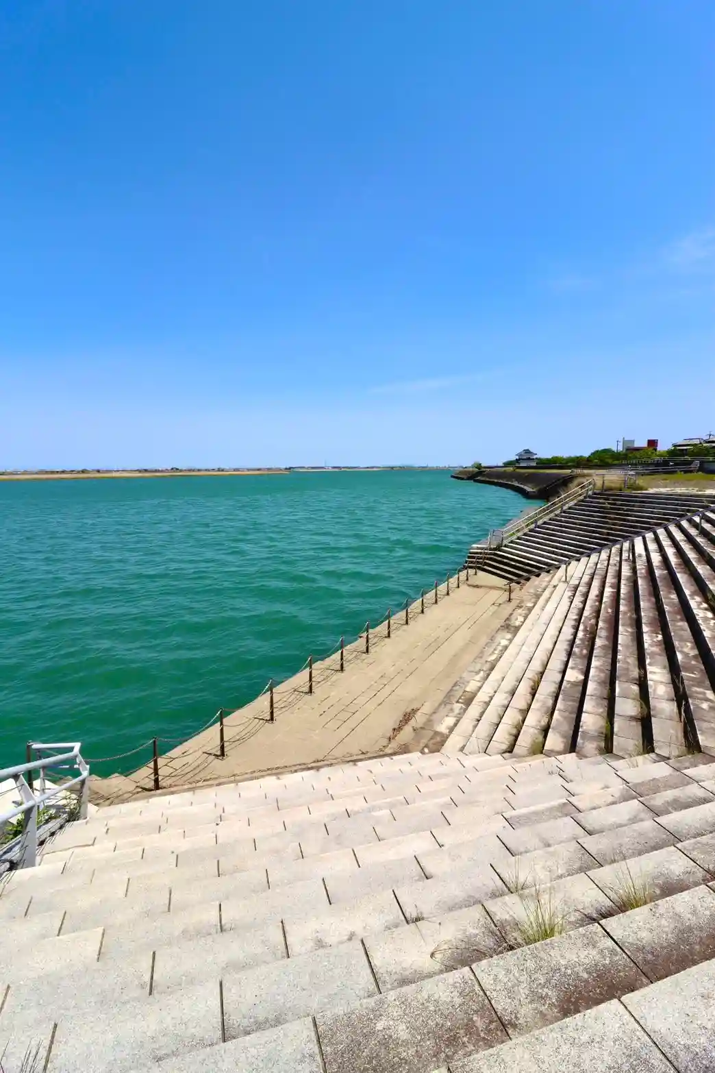 鳥居が揖斐川に向いていて日の出がそこから見えることで有名な絶景スポットです。鳥居脇の灯籠は江戸時代のものだということです。川沿いにある小さな神社ですが素晴らしい景色でした。