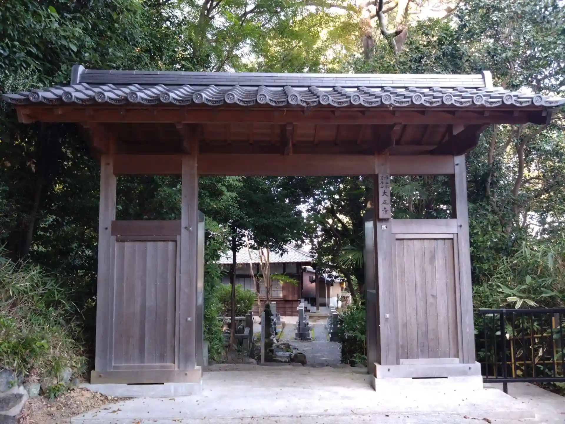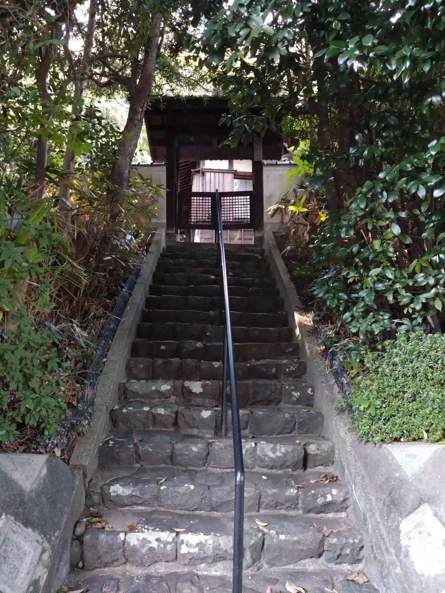 正面の石段は上がっても入れないので、本堂横の門から入ります。