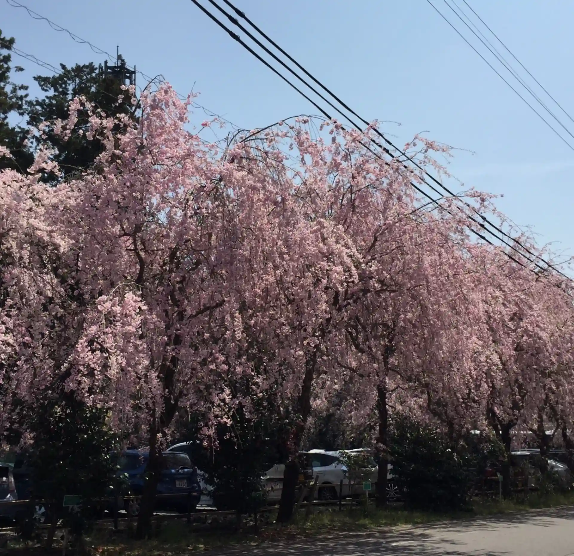 駐車場沿いのしだれ桜