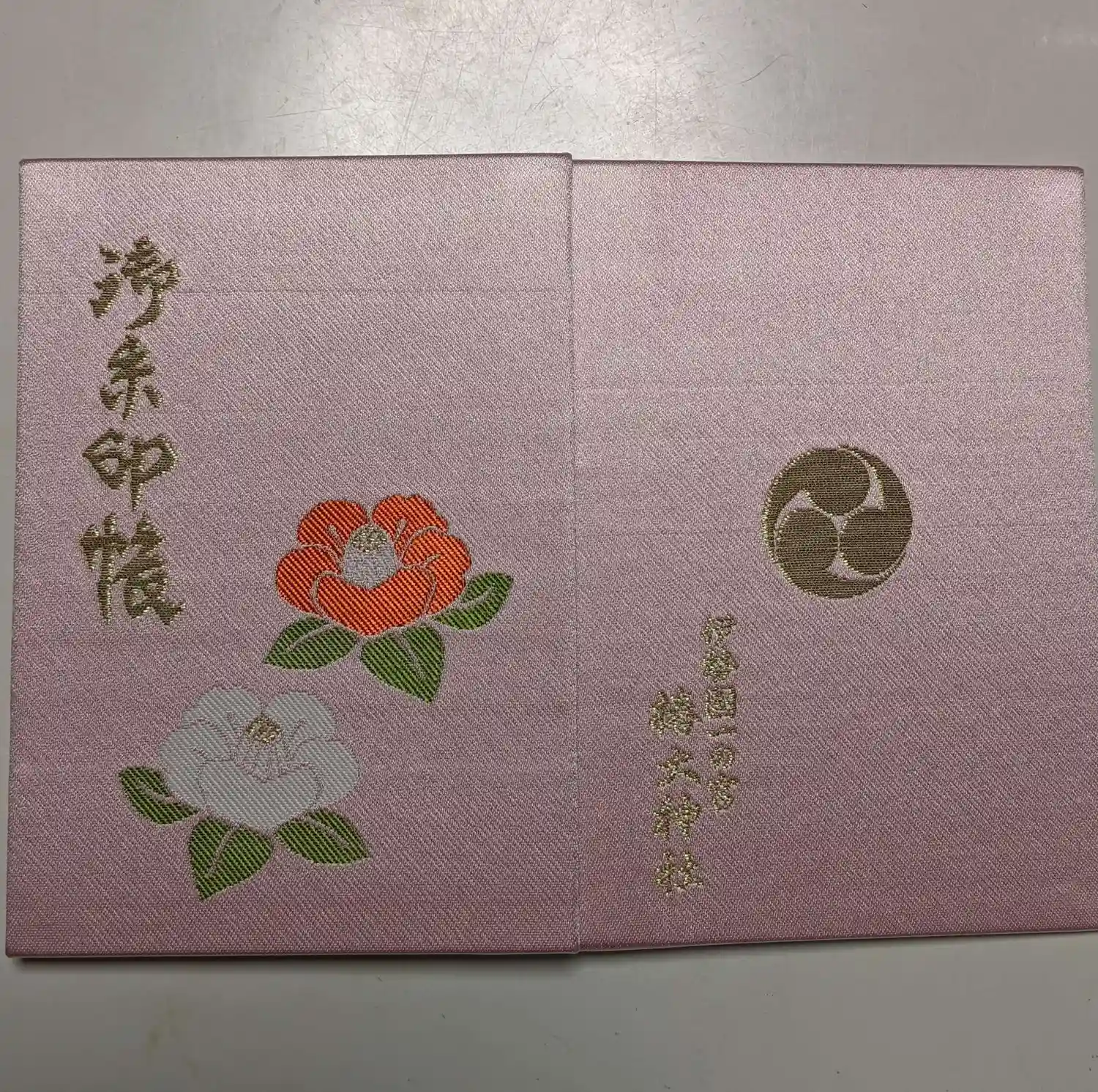 濃紺(淡いピンク)の生地を使った御朱印帳です。