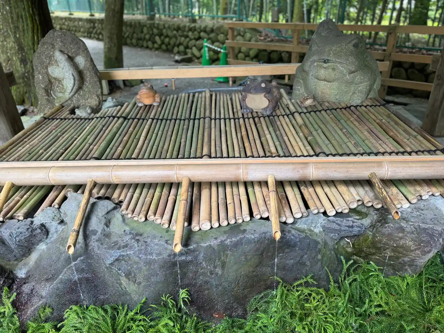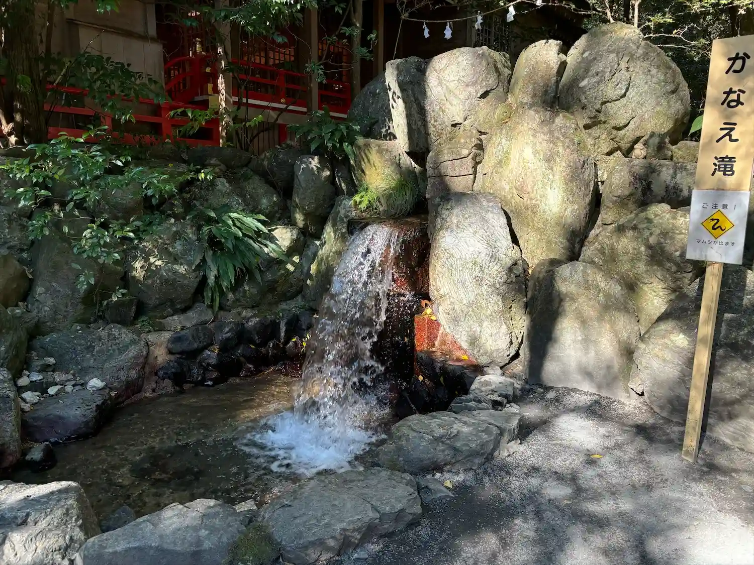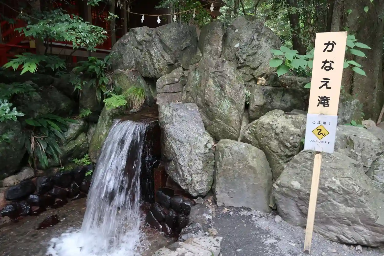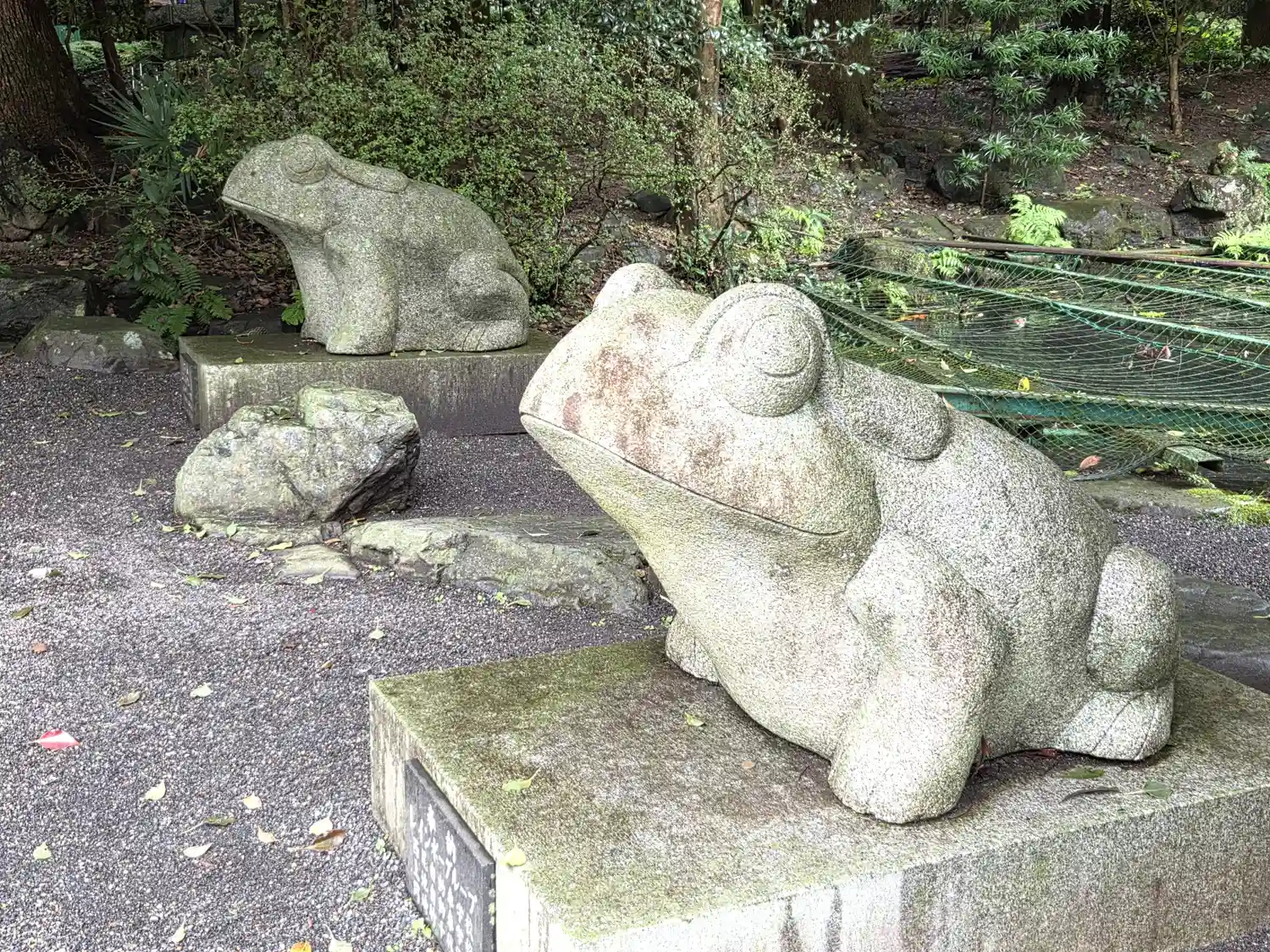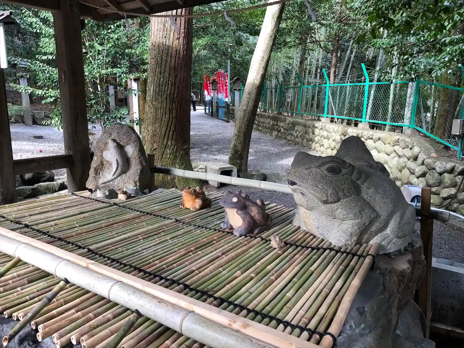 この滝や手水舎などいたるところに蛙がいます