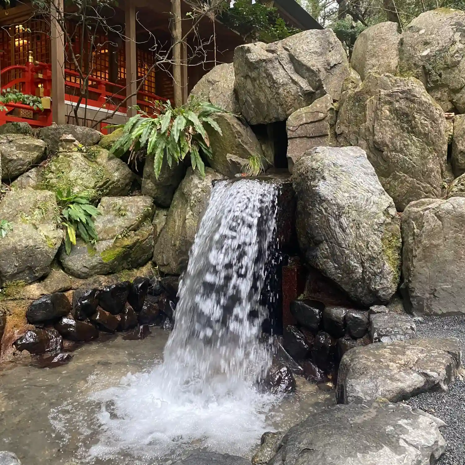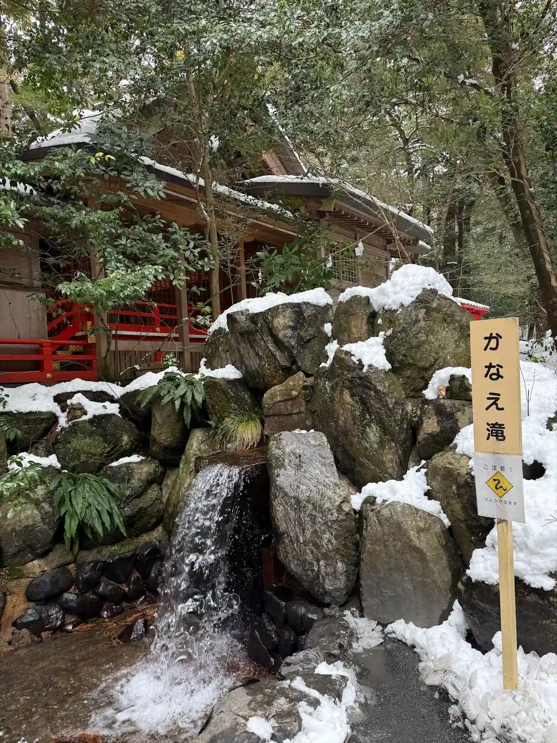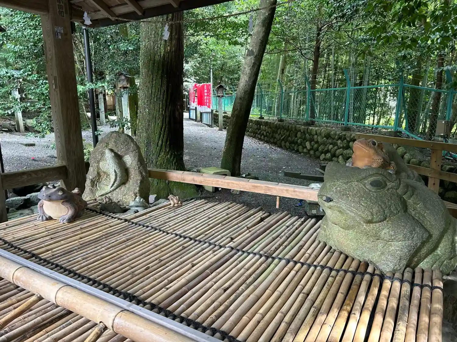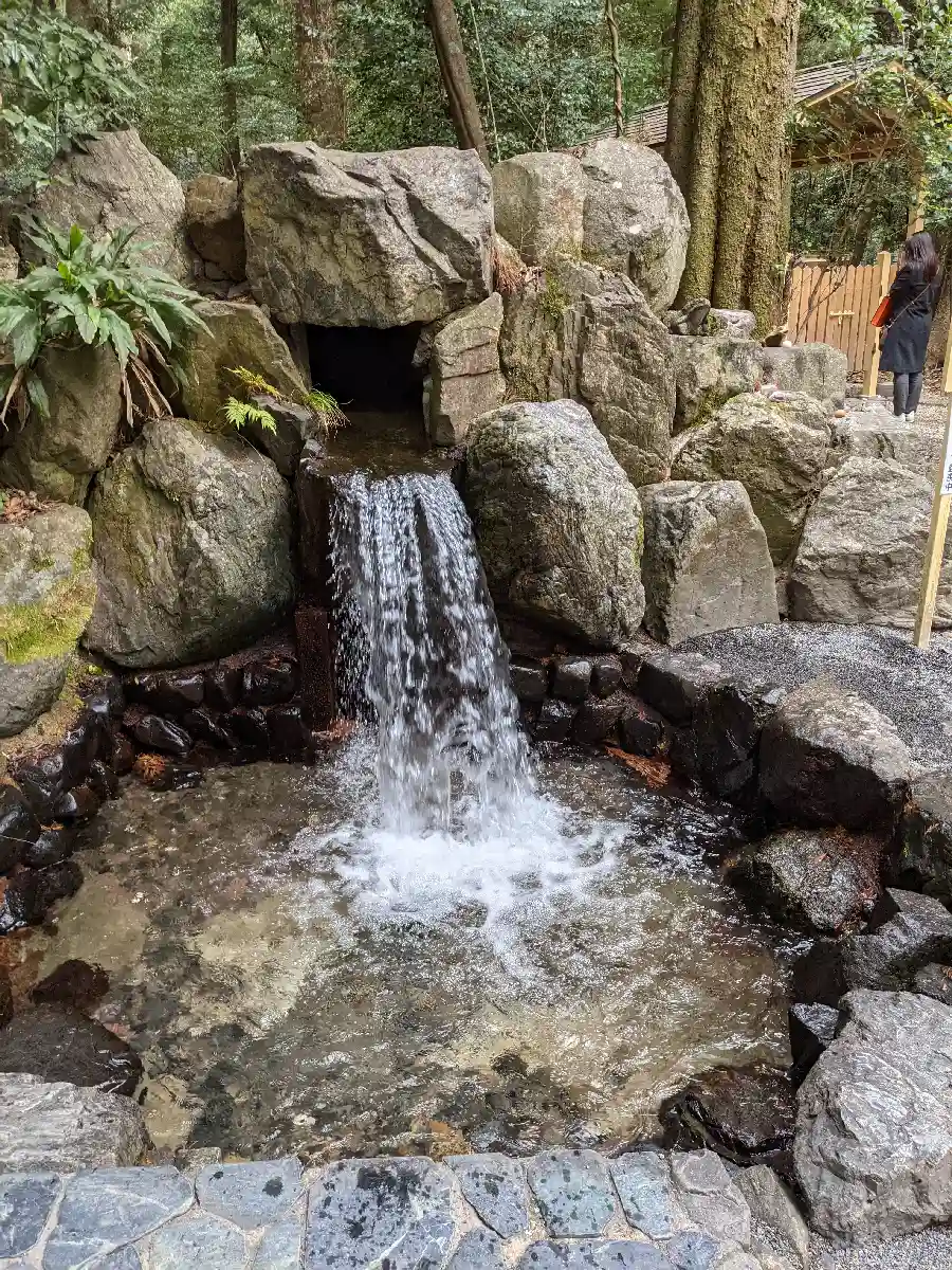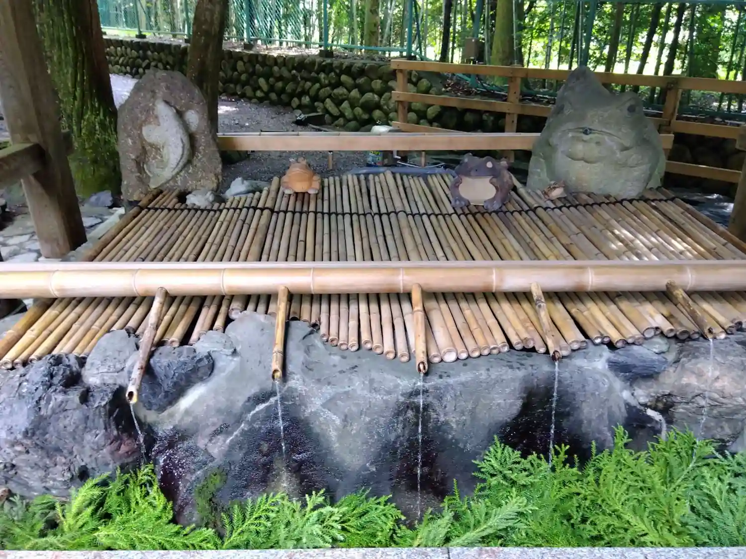 この滝や手水舎などいたるところに蛙がいます