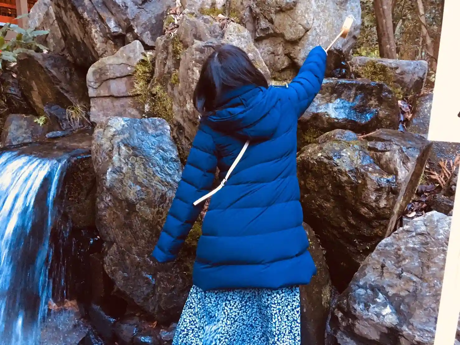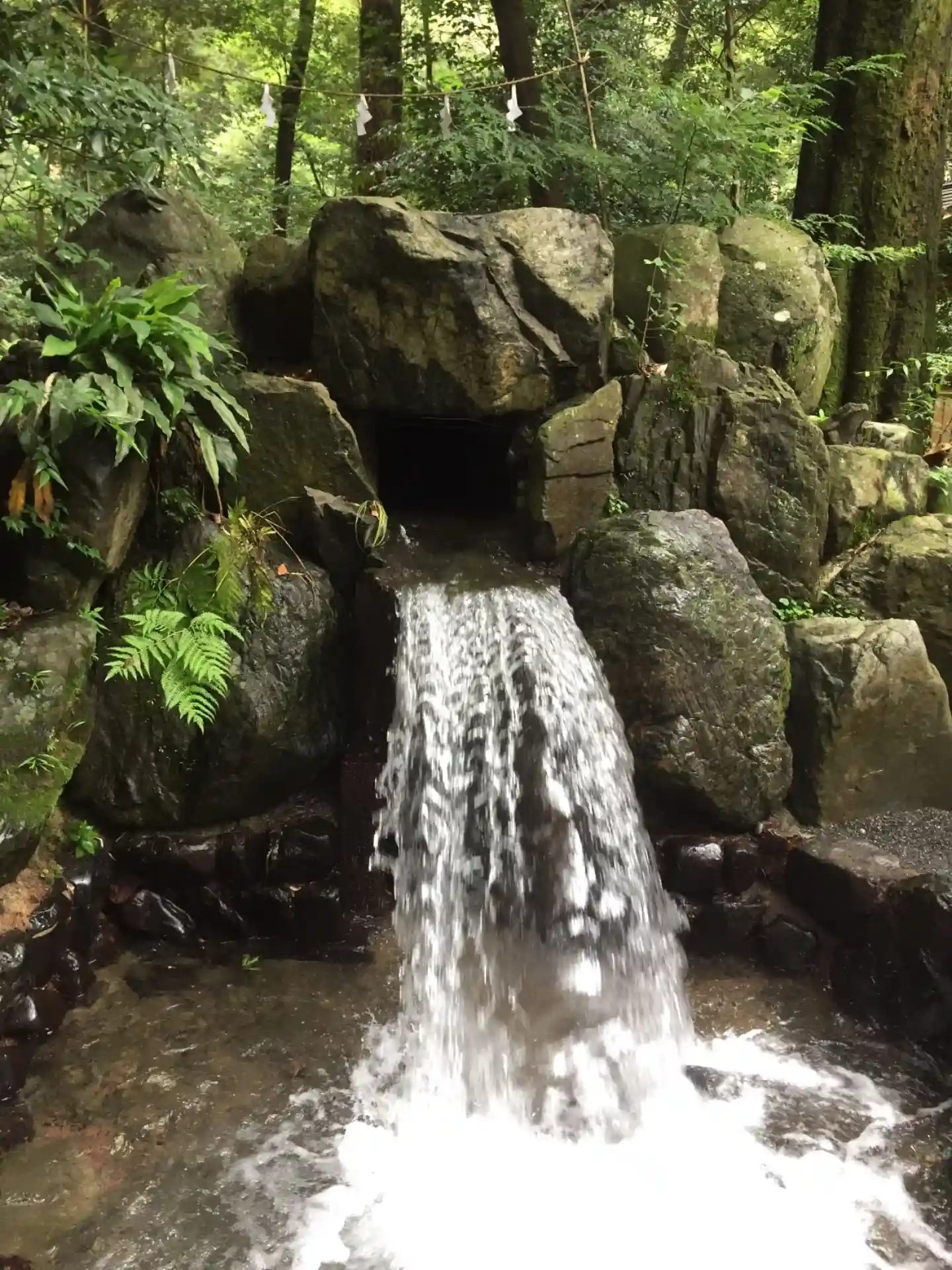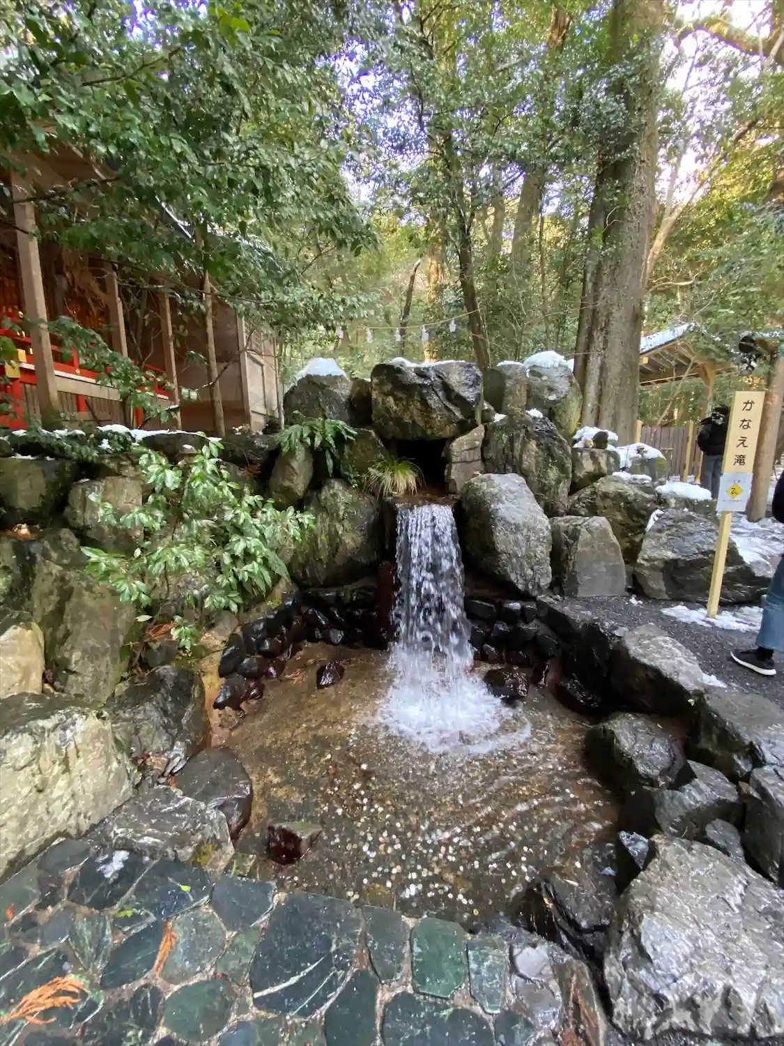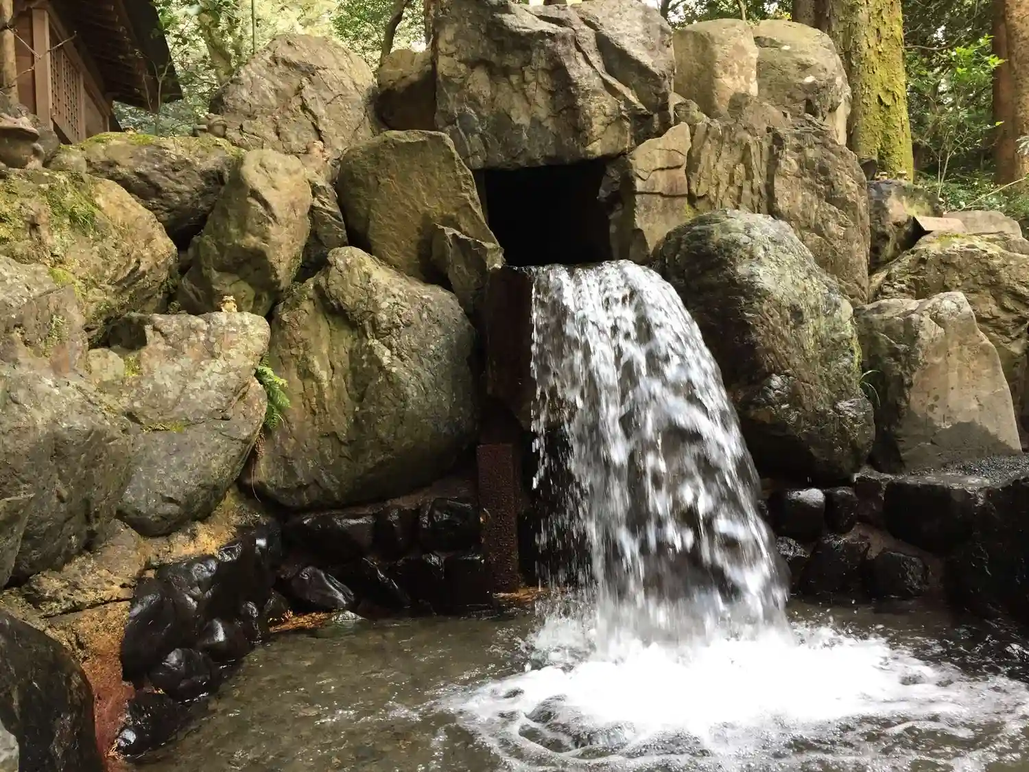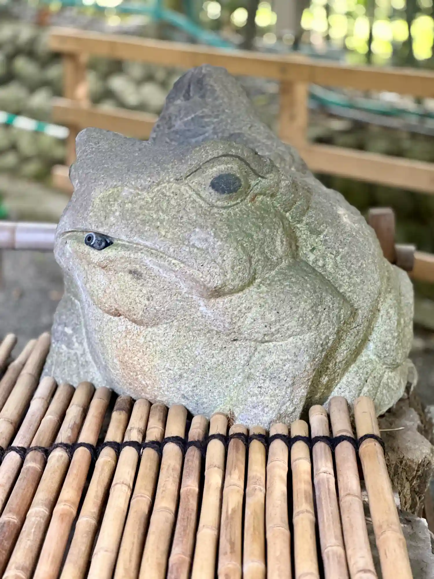 この滝や手水舎などいたるところに蛙がいます