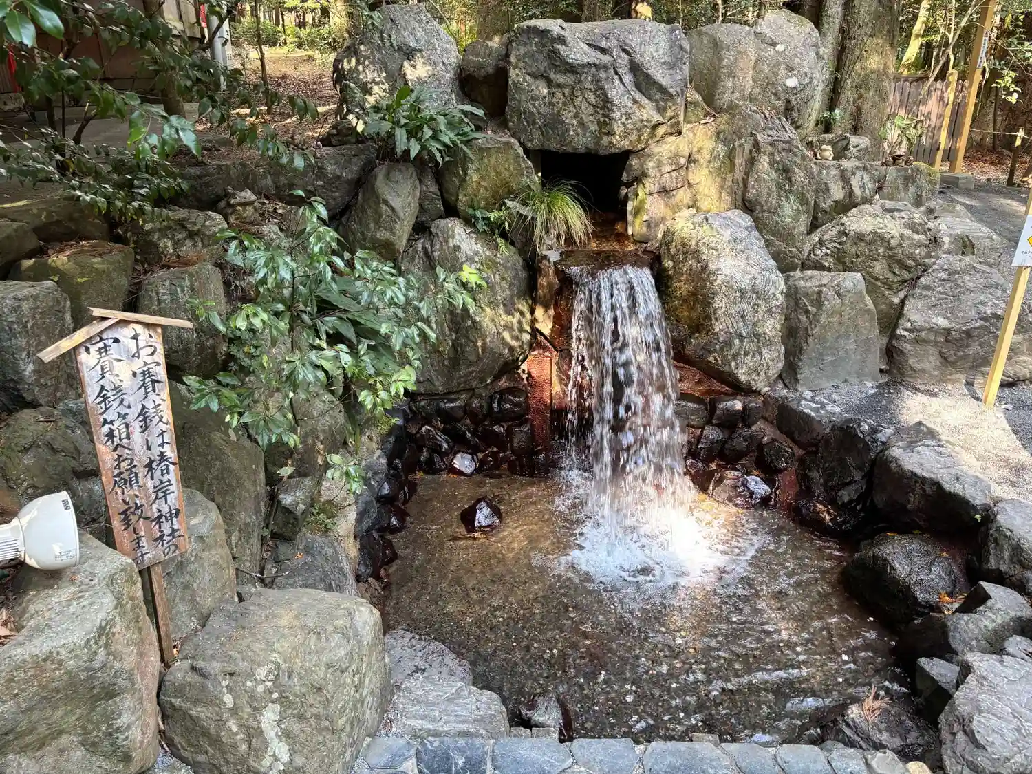 椿岸神社の右奥、滝の隣。