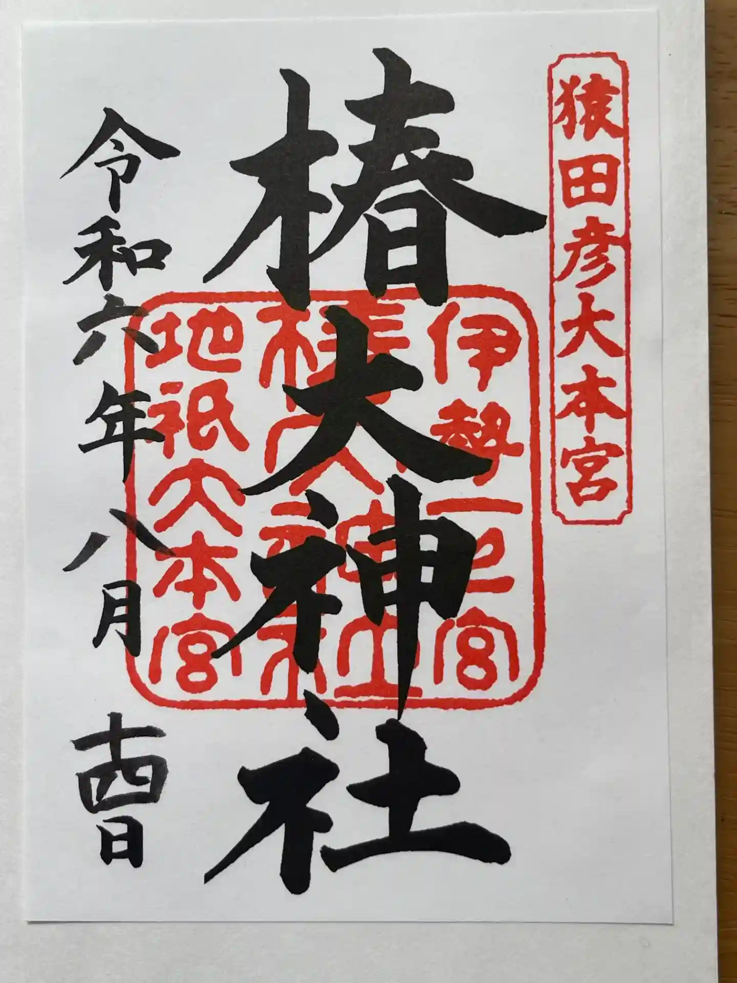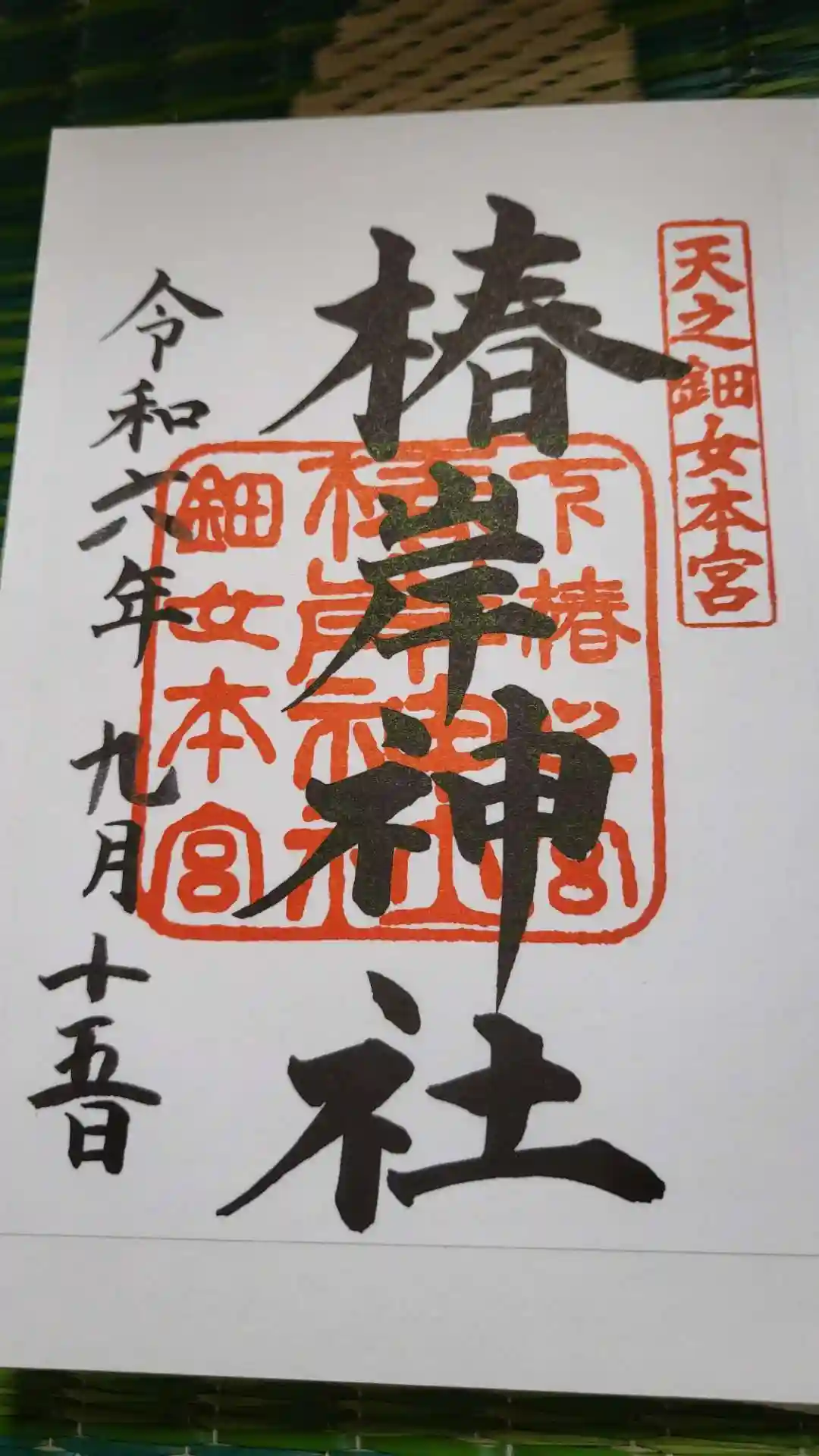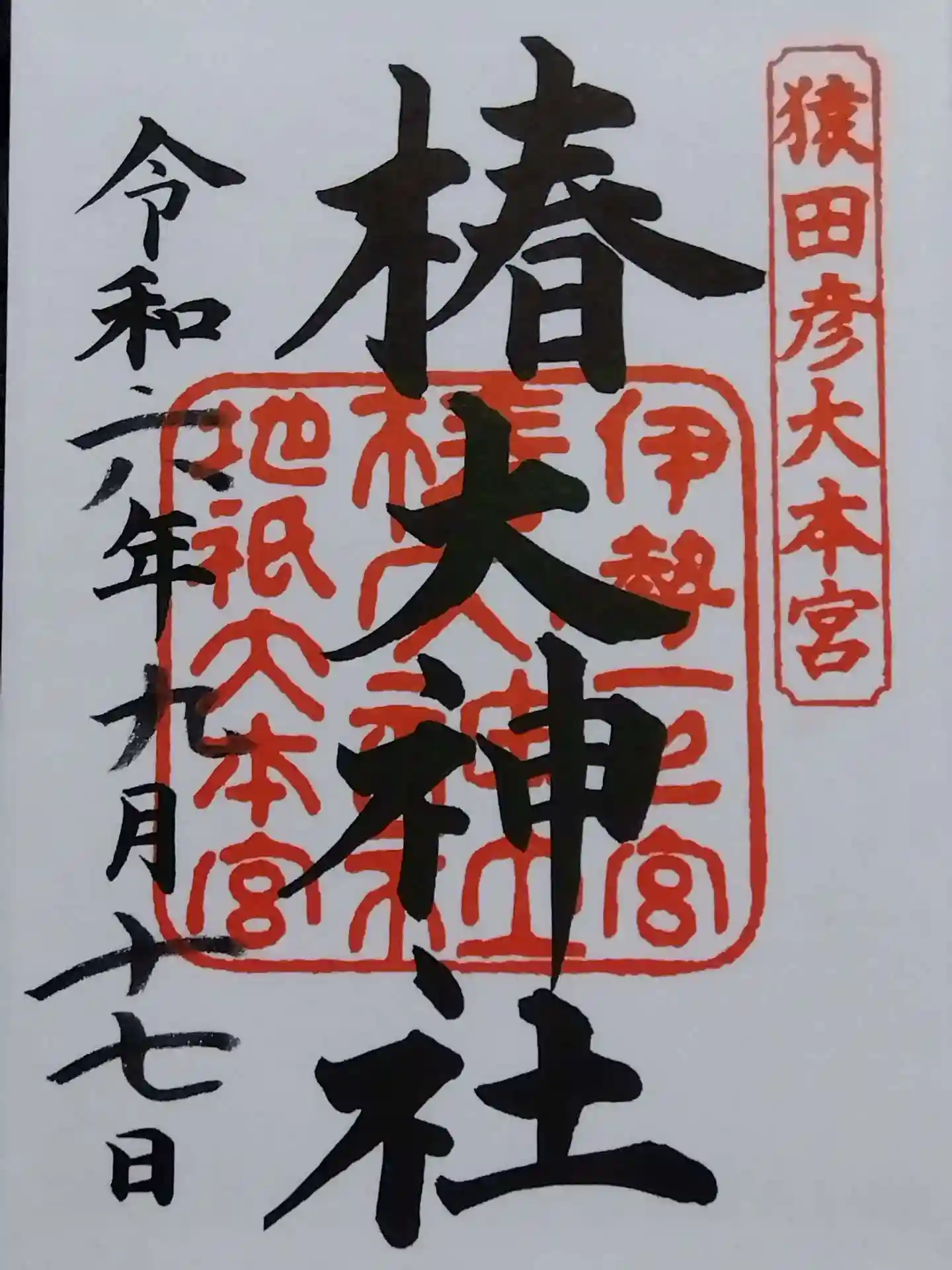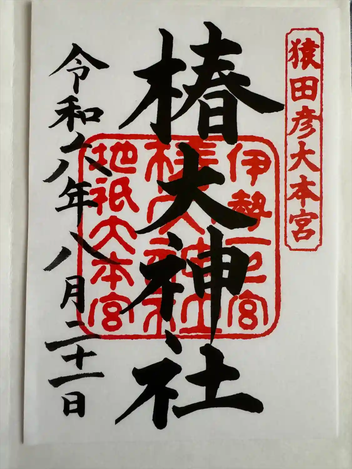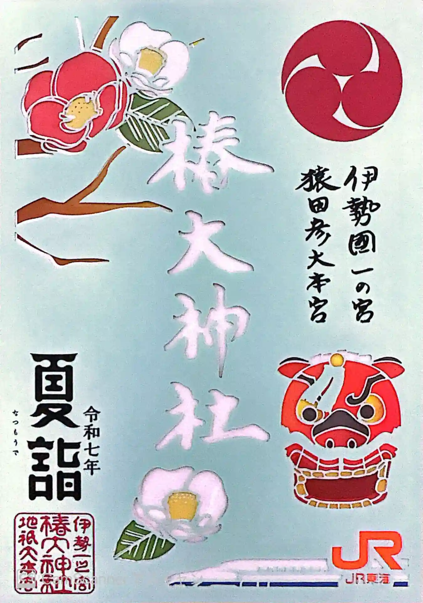 椿大神社の御朱印です。紅白の椿の花が綺麗です。