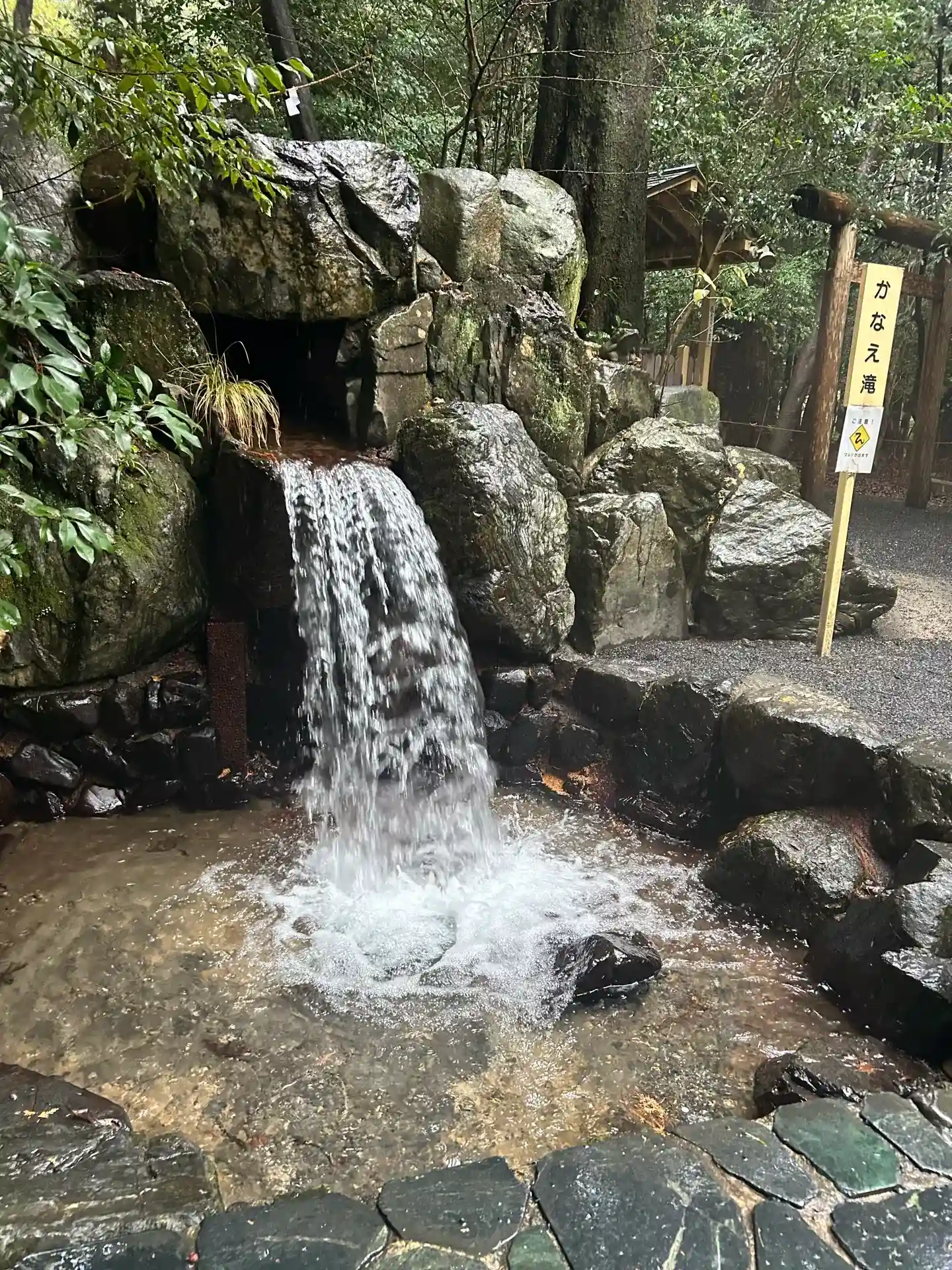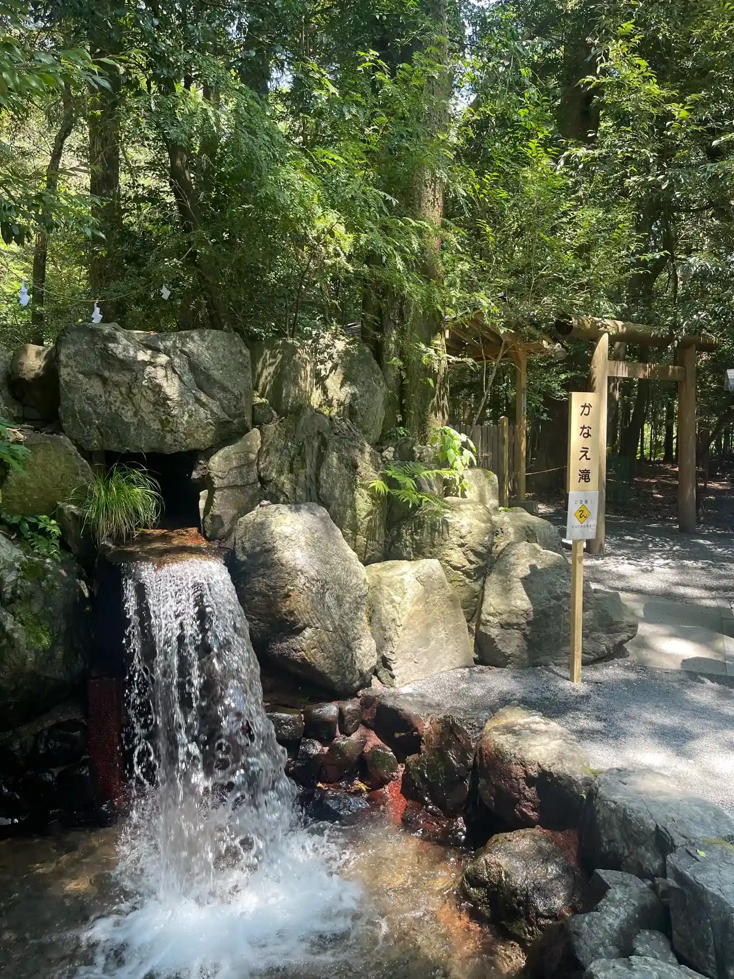 伊勢一の宮。かなえ滝ありました。すごい水量でかなり涼しい気分に。