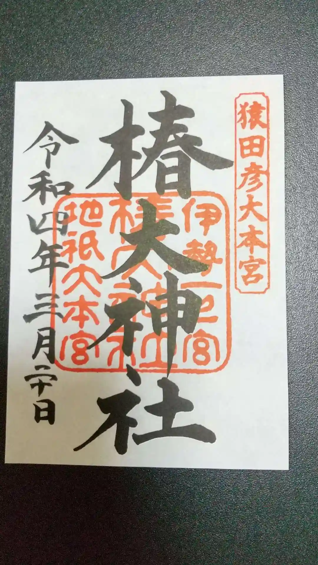 御朱印は椿大神社のものと敷地内にある椿岸神社のものと…