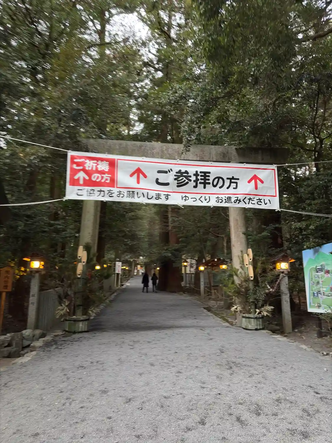 なだらかに上がりながら伸びる参道の入口。