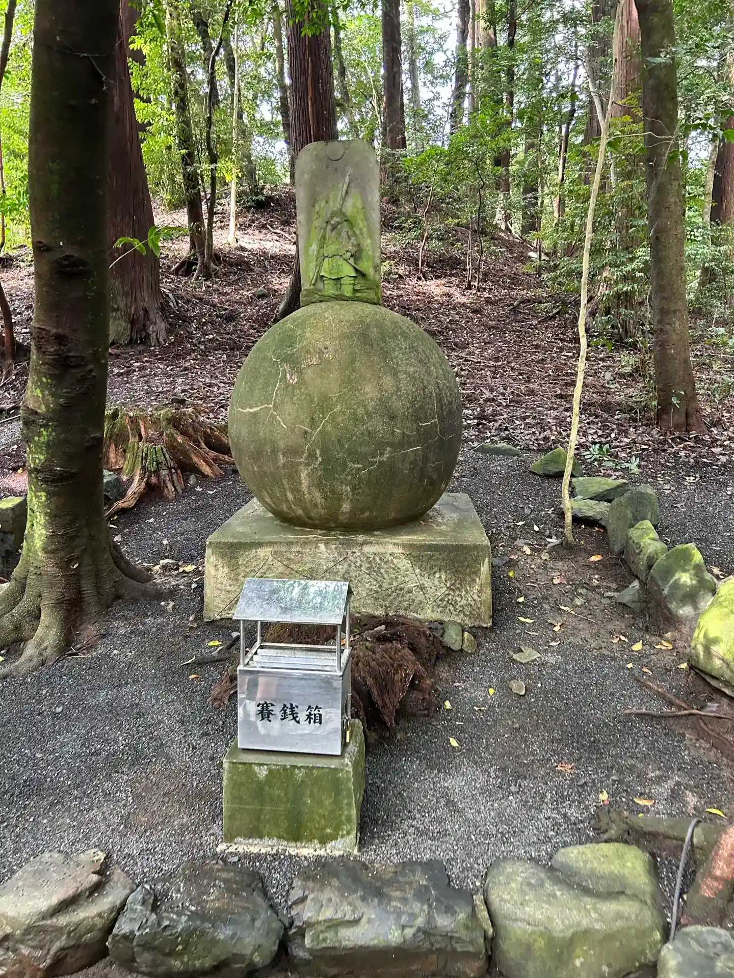 地球玉と古墳。猿田彦大神の墳墓とされています。
