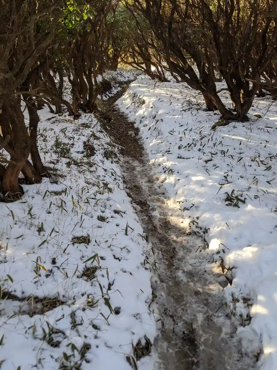まさかの雪。