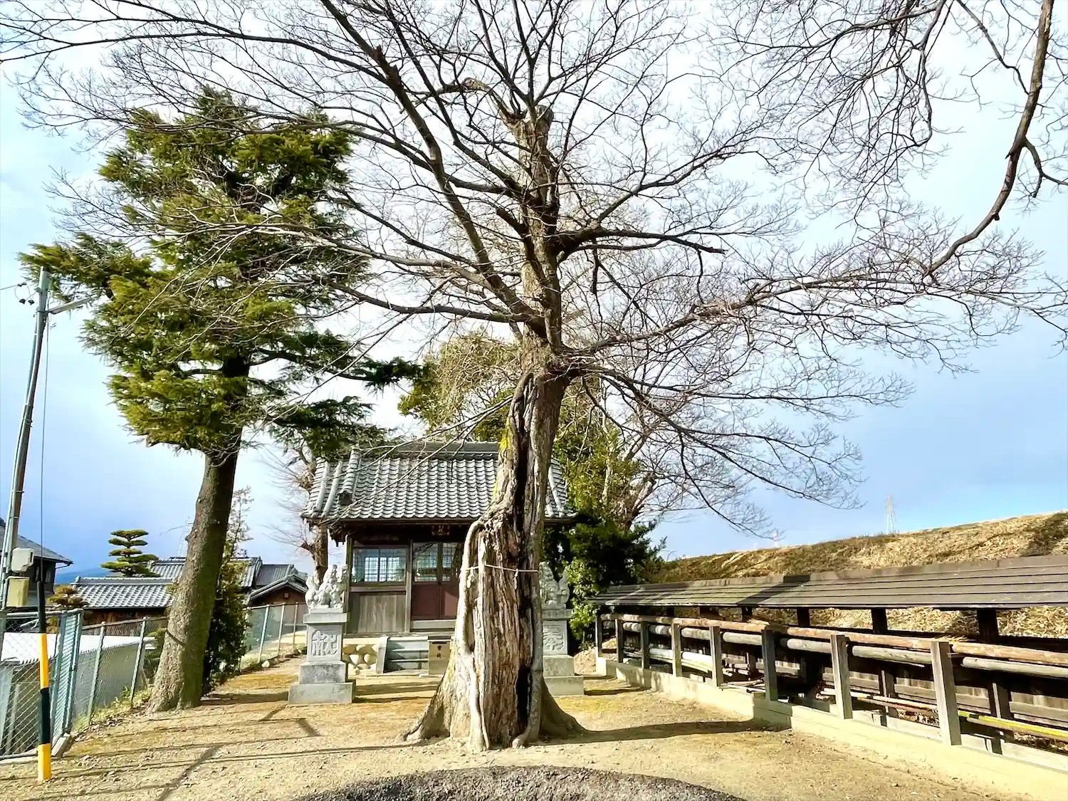 木曽川の堤防から下がったところに鎮座しています。
