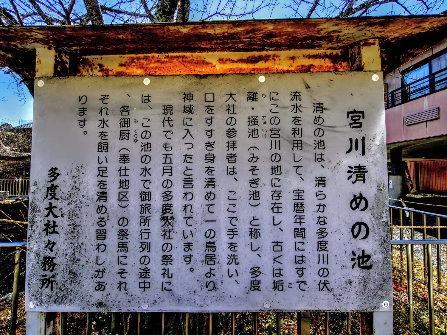 本宮の脇を流れる落葉川。