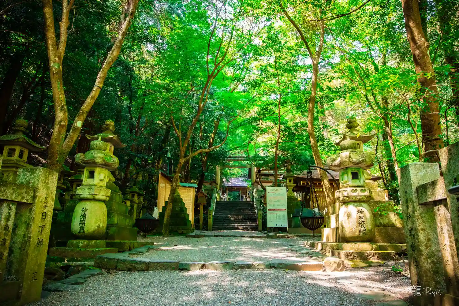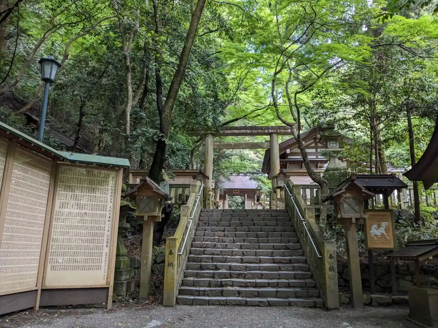 多度山の斜面にあり、一番奥の本宮まで川の水の音や鳥の声が心地良く聞こえてきます。