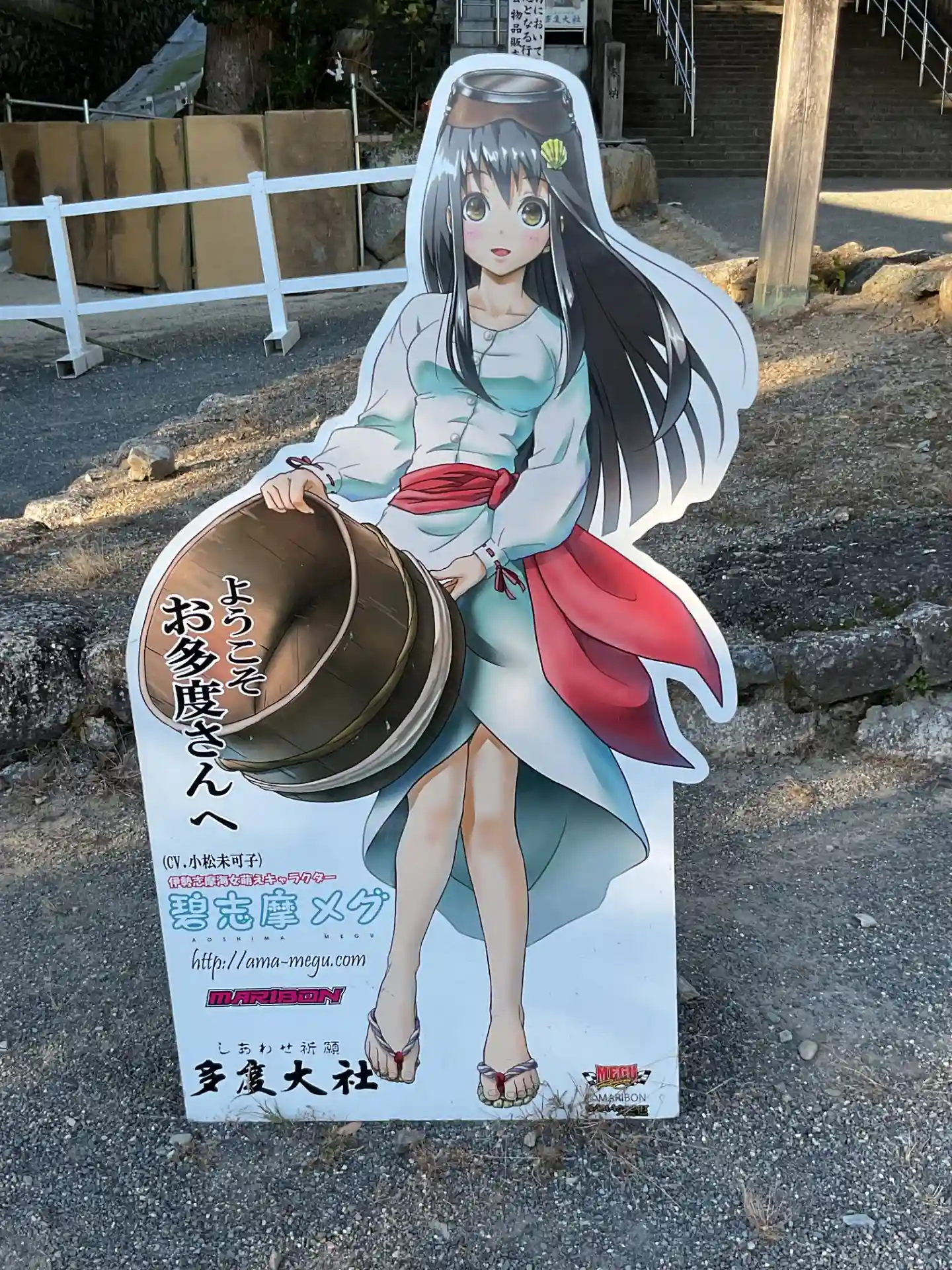 まずは碧志磨メグのお出迎えです。色っぽ過ぎて地元志摩市の公認キャラから外されたという過去があります。調べてみたら最近は人気が再燃してきて、三重県のあちこちで見かけるようです。