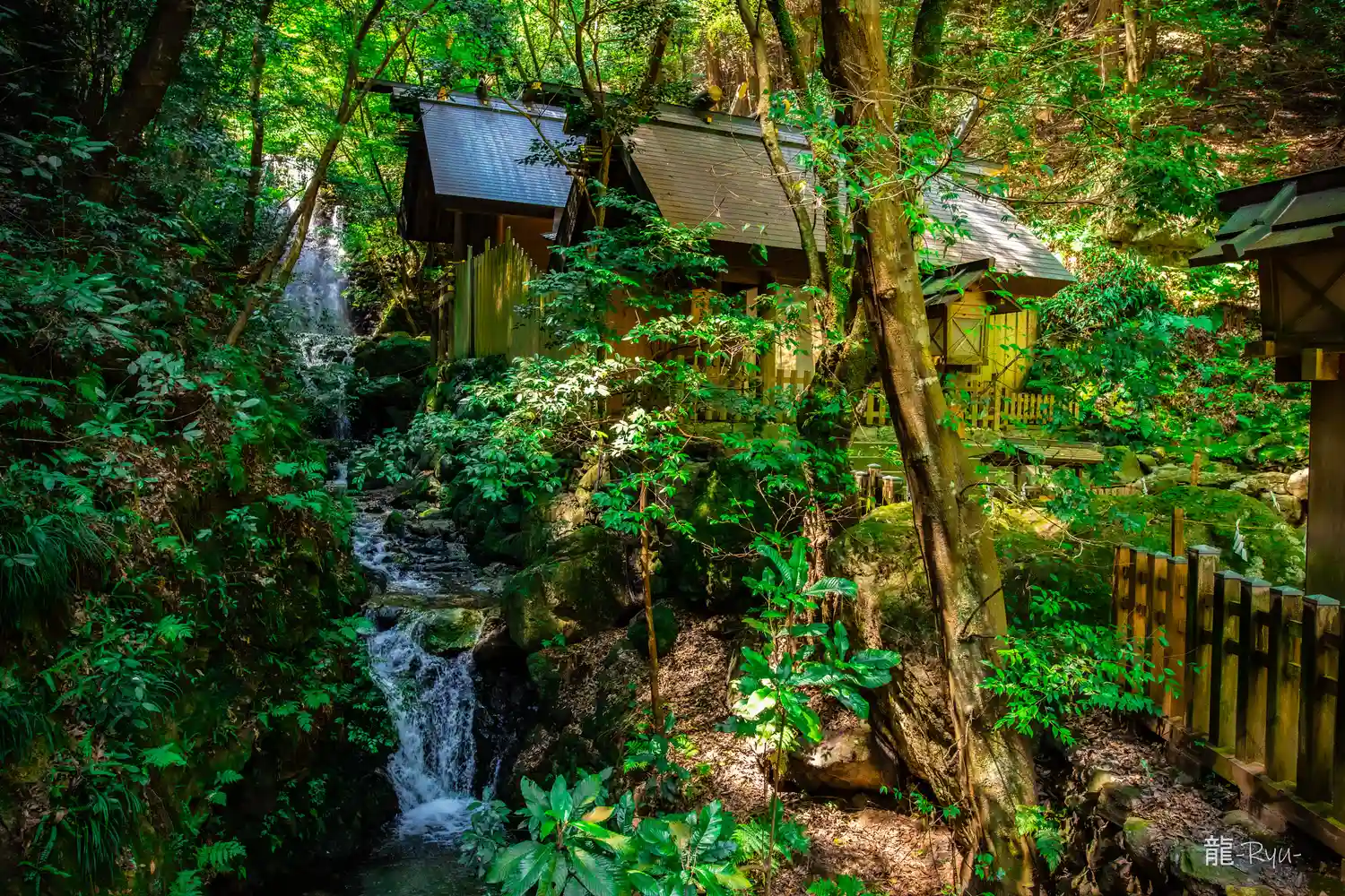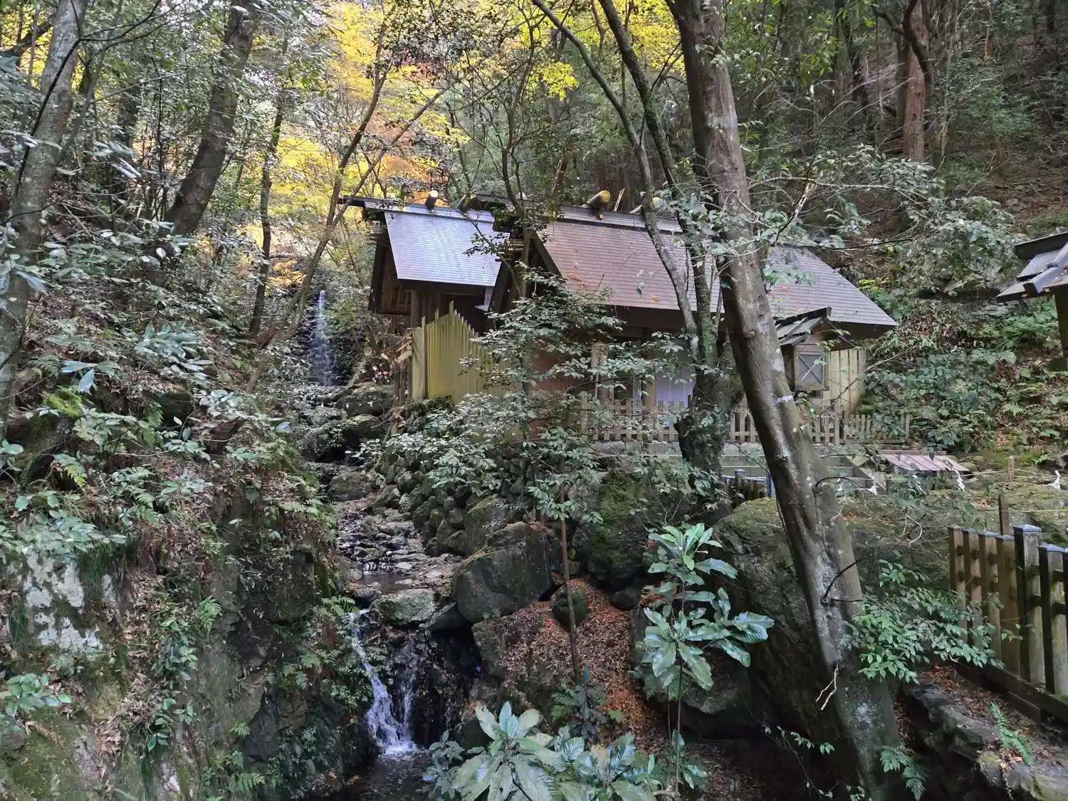 本宮の脇を流れる落葉川。