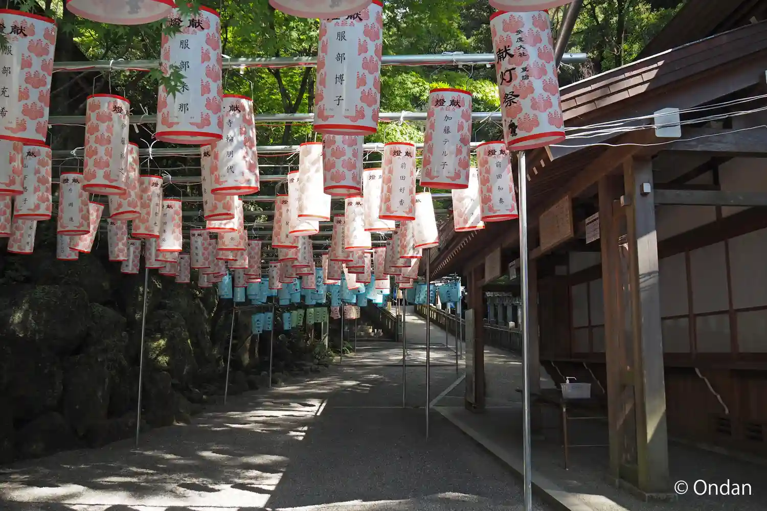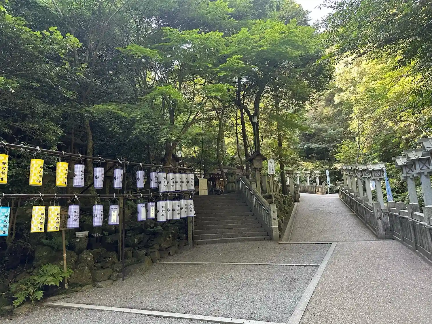 後はお帰りです。灯籠がいっぱい並んでいる道を通って行きました。