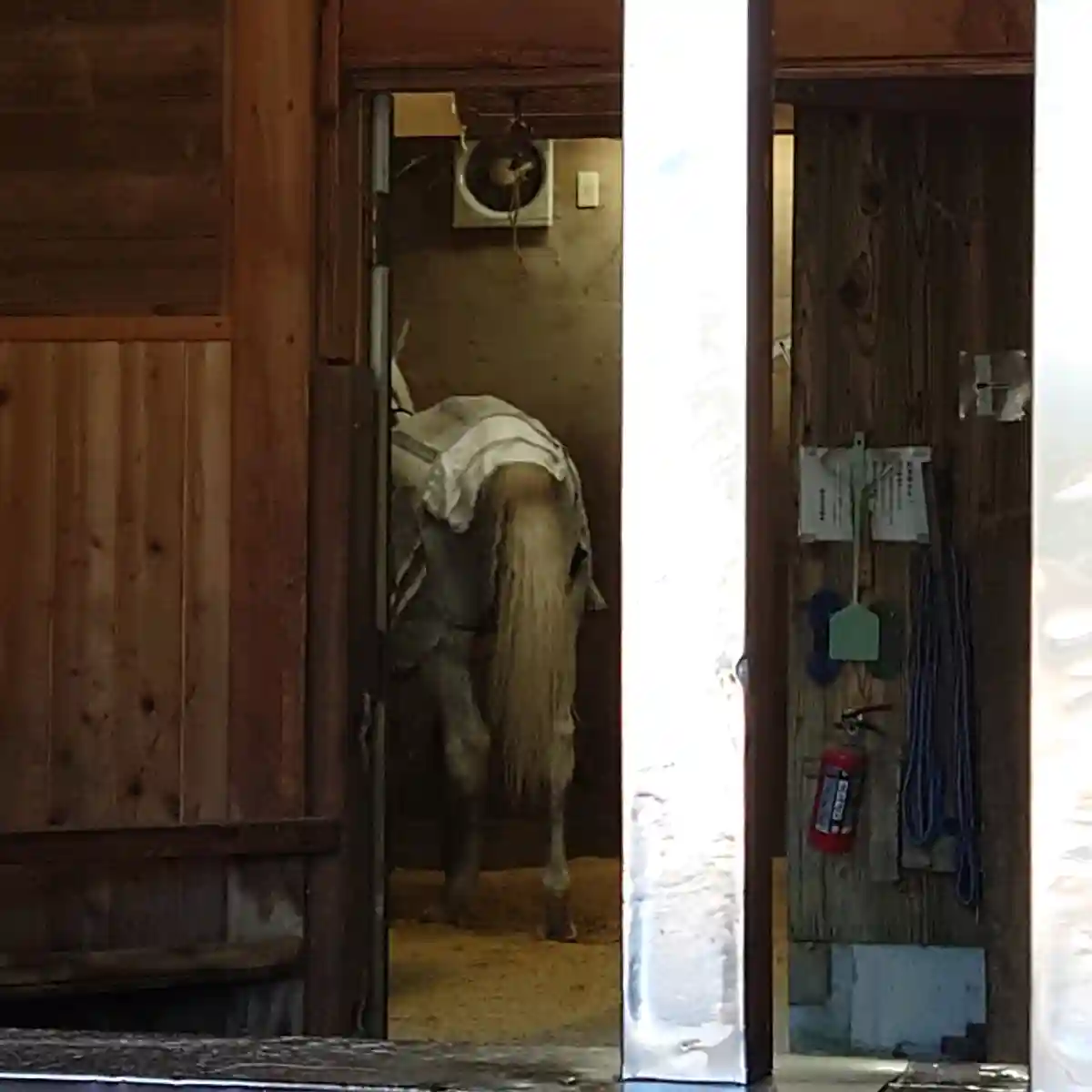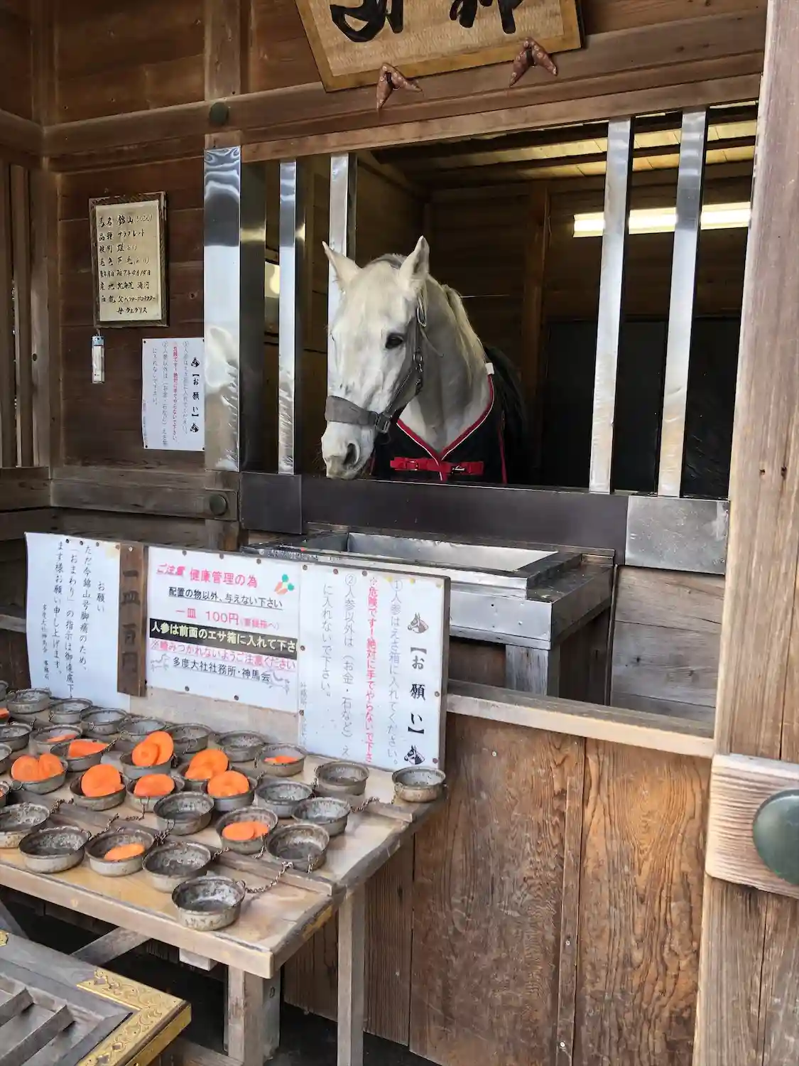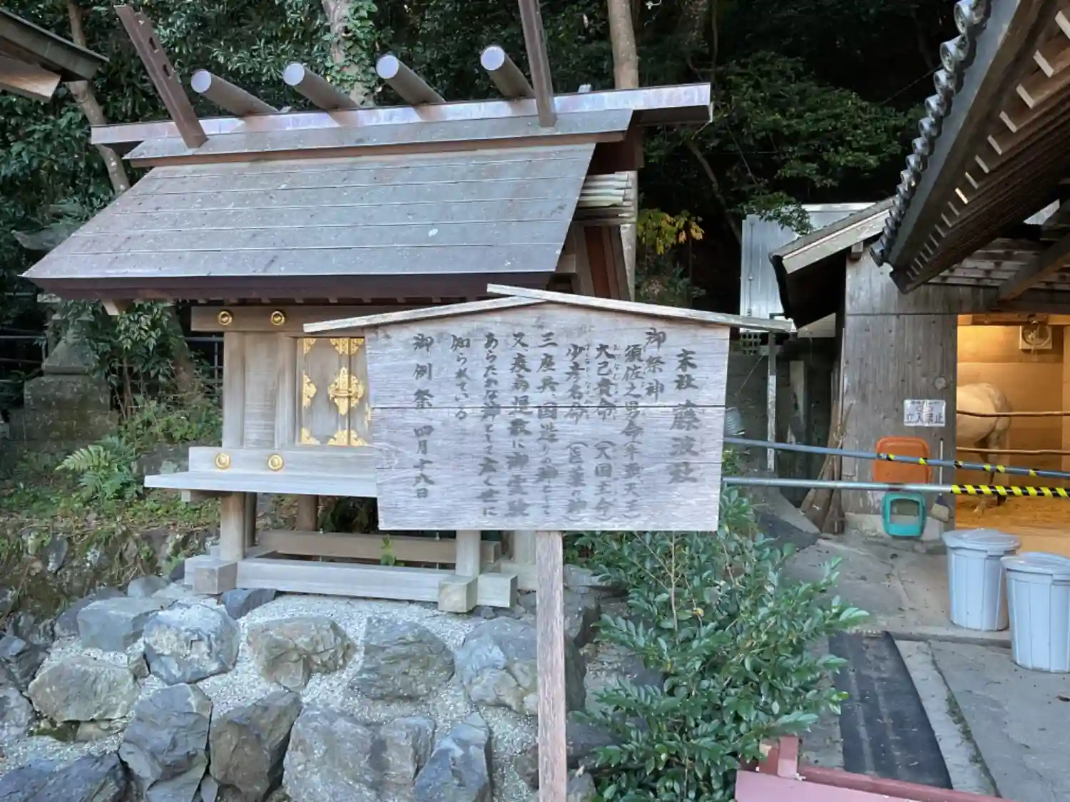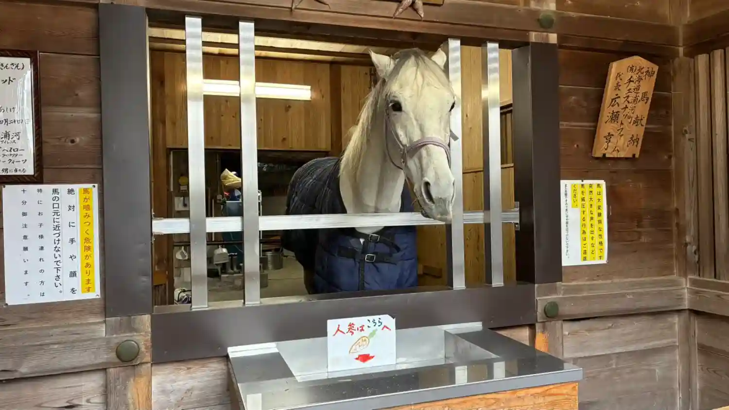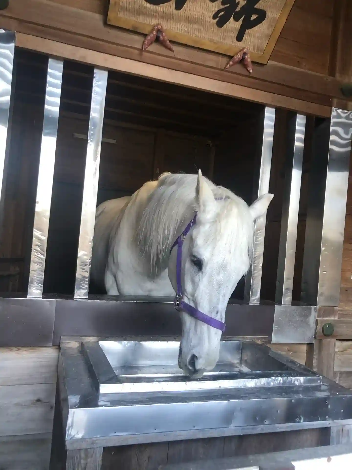 奉幣馬舎。白馬がいます。