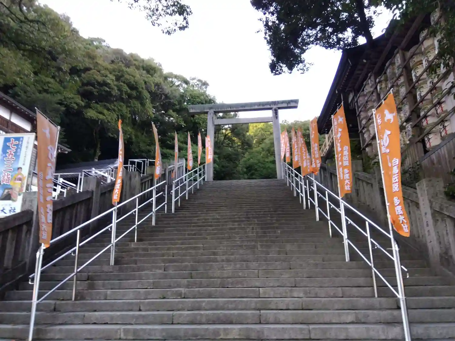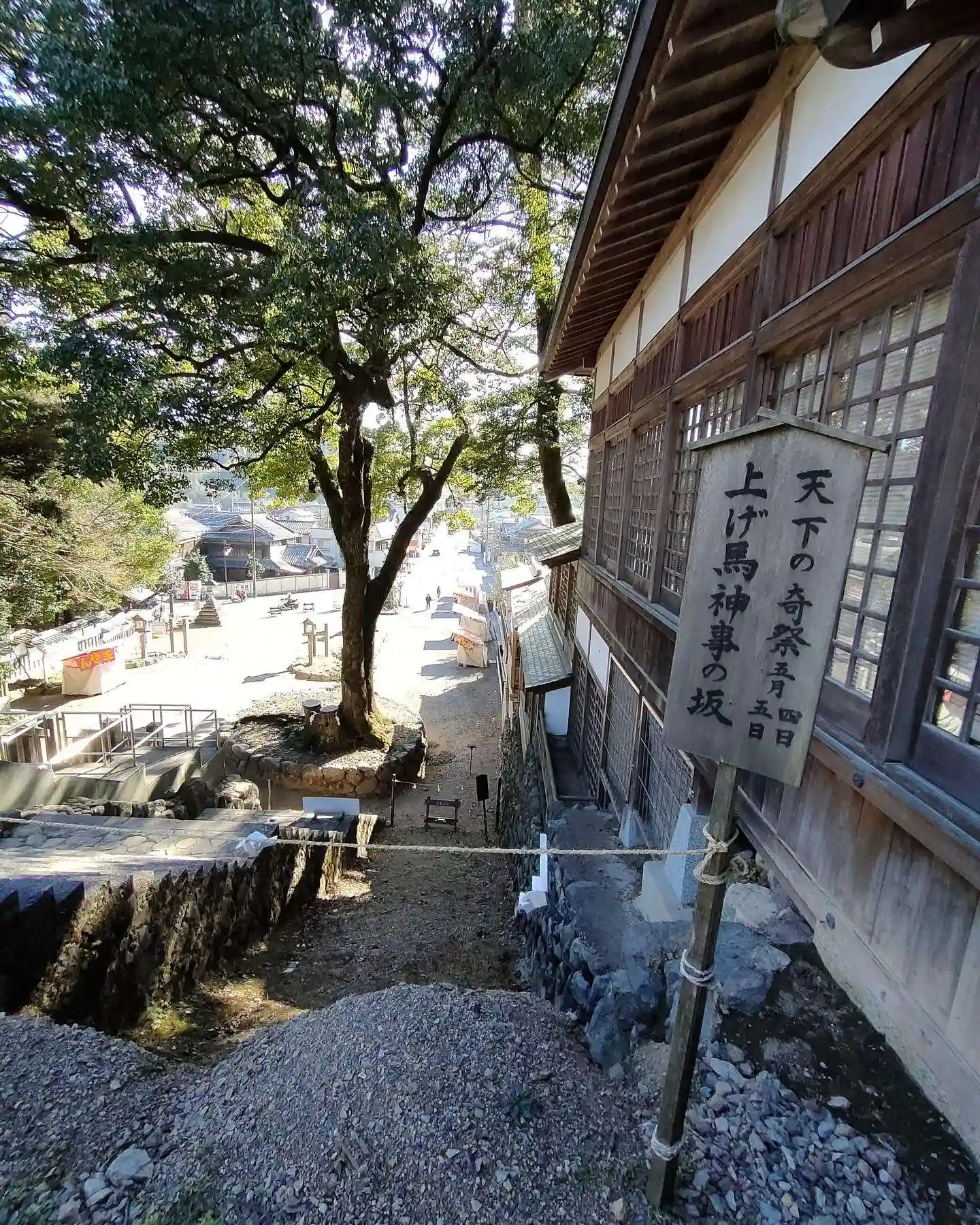 上げ馬神事はこの階段の左手で行われます。