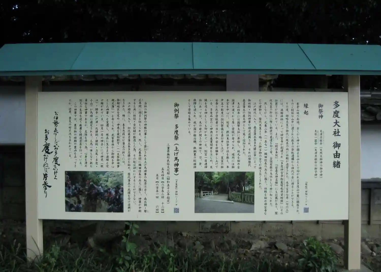 上げ馬神事が行われる所です。多度大社は上げ馬神事で有名です。