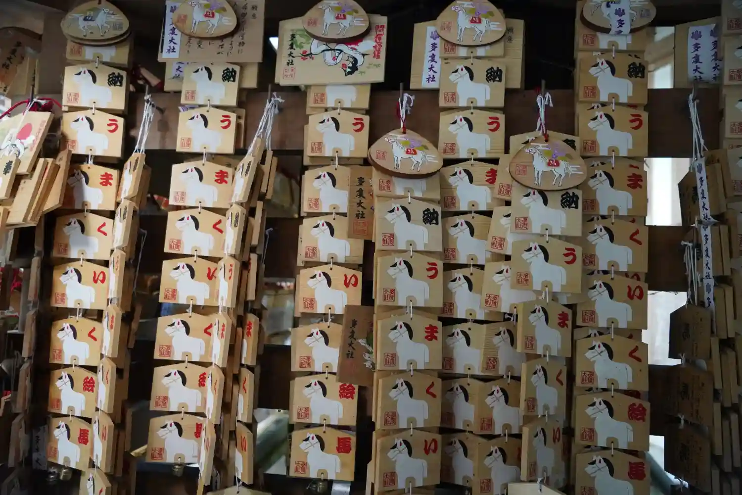 九枚の連なった絵馬《うまくいく絵馬》