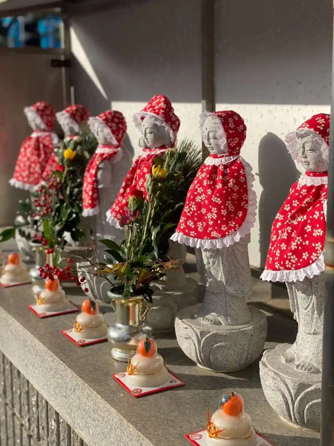 10年に一度の大寒波。 境内もすっかり雪化粧されました。 お地蔵様も寒そうです…