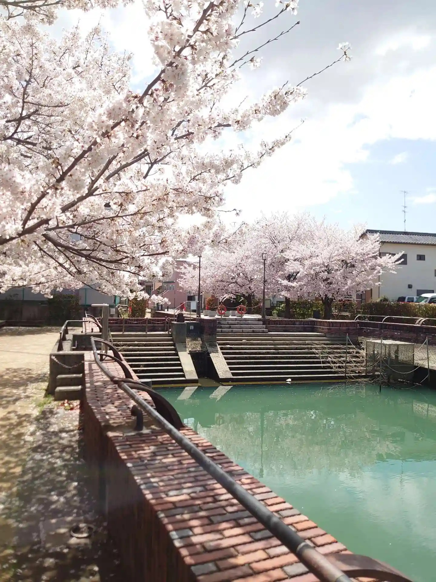 お寺から歩いてすぐそばの赤レンガの道「住吉遊歩道」です。桜がとてもキレイに咲いています。桑名城の外…