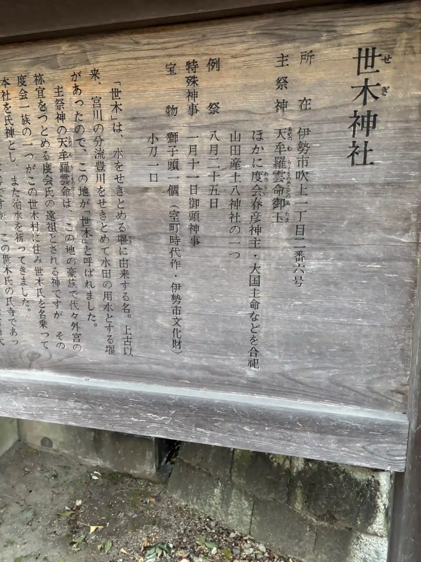 世木神社(せぎじんじゃ)は、三重県伊勢市吹上に鎮座する神社で、伊勢神宮・外宮からもほど近い場所にあ…