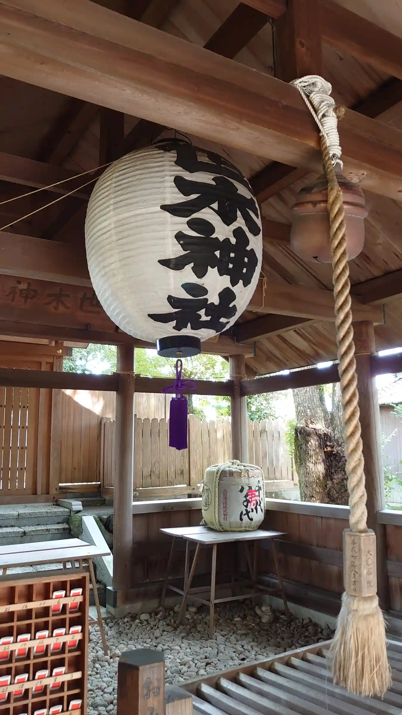 祓殿。屋根だけがある不思議な空間。賽銭箱しかありません。