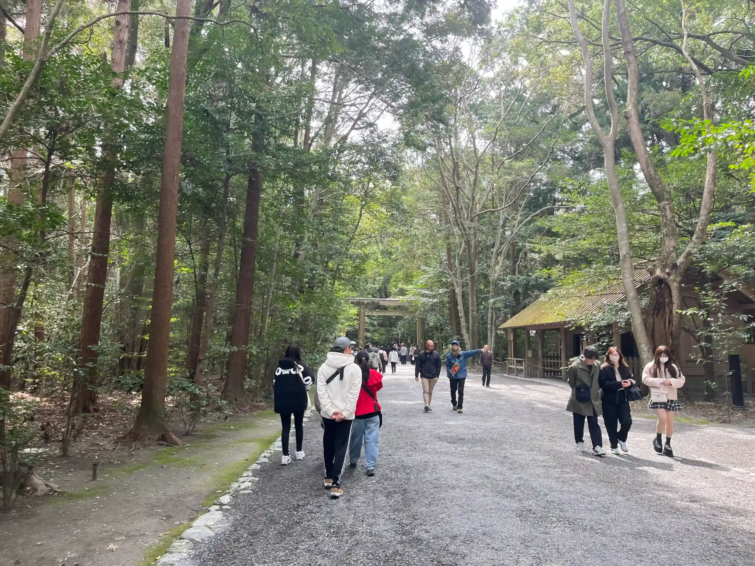 10過ぎで内宮付近の駐車場は満車だったので外宮の駐車場へ車を止め正宮へ向かいました。沢山の参拝者が居ましたが、境内は広くゆっくり参拝できました。