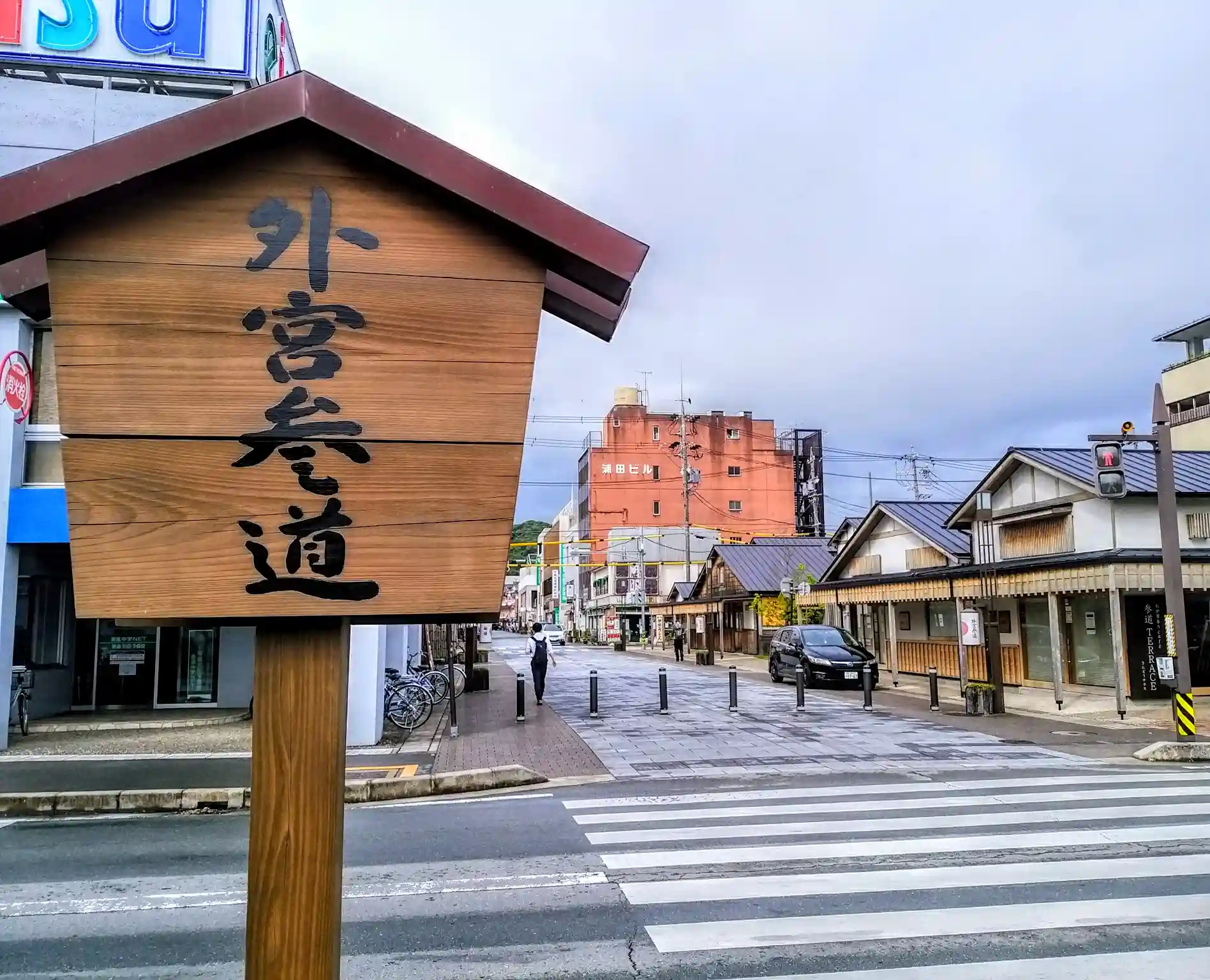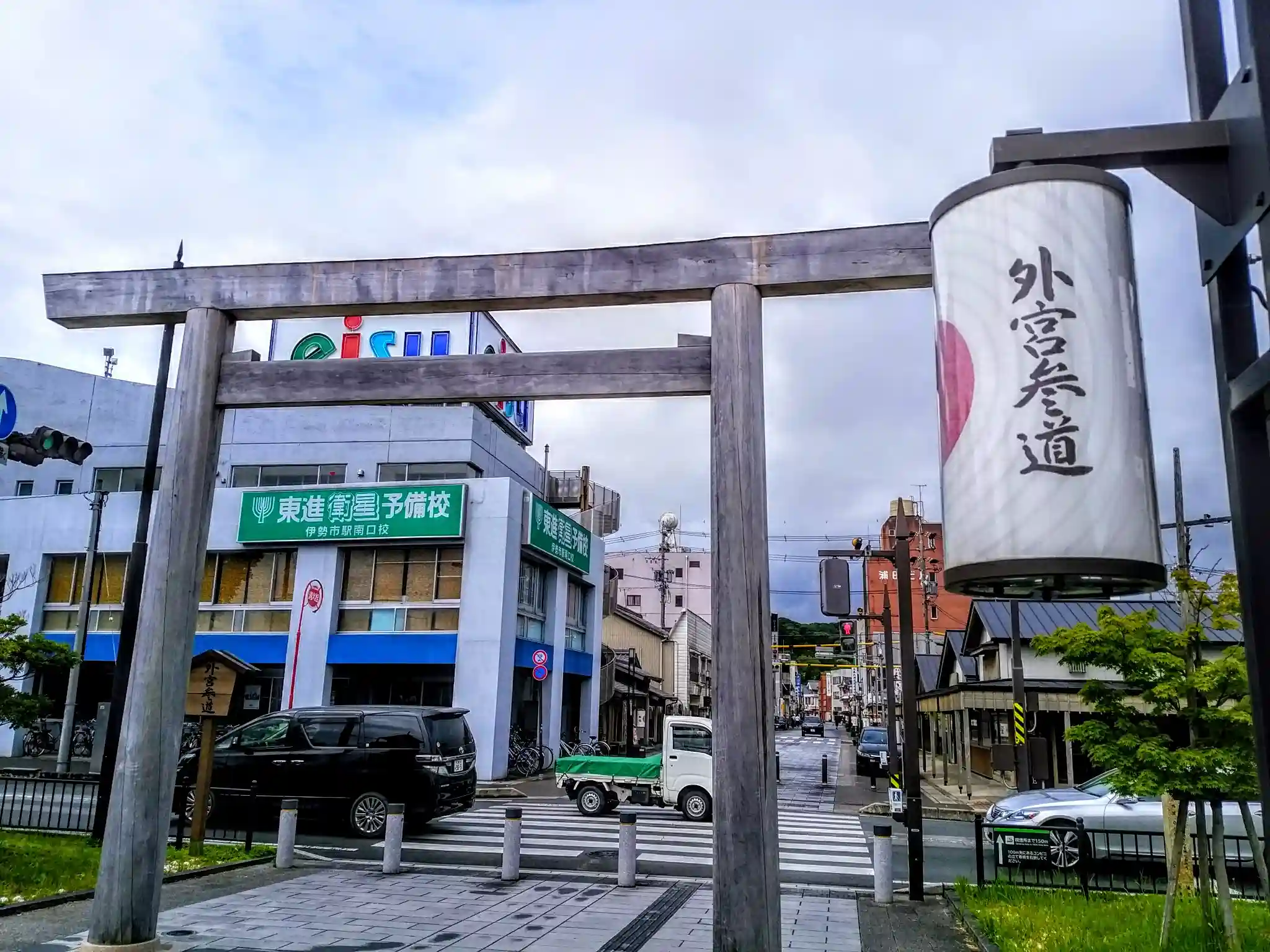 まずは外宮から。名古屋から近鉄特急で約1時間30分。伊勢市駅を出ると目の前が外宮参道です。