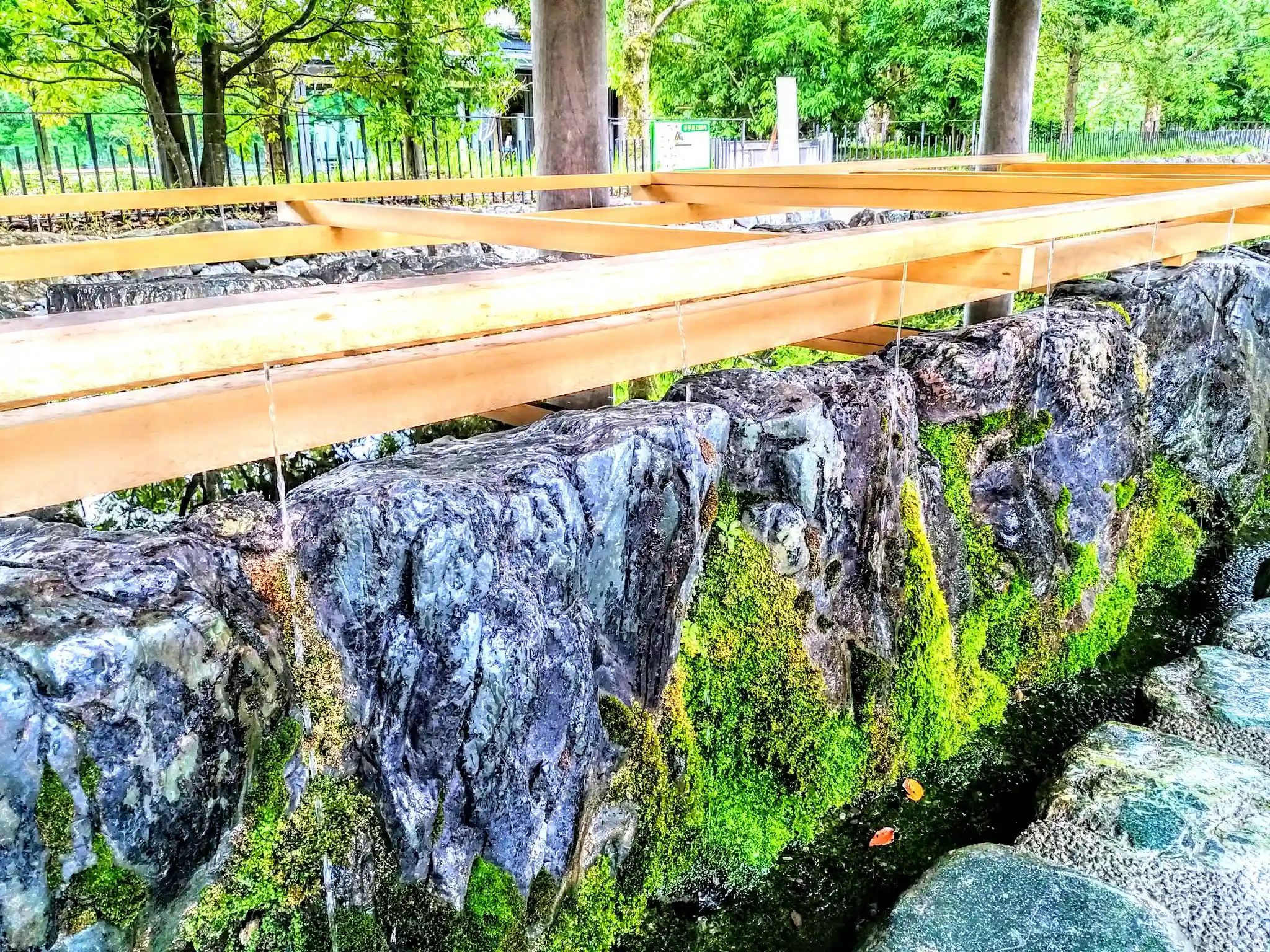 現在コロナ対策で柄杓が取り除かれています。代わりにチョロチョロと水が出ています。