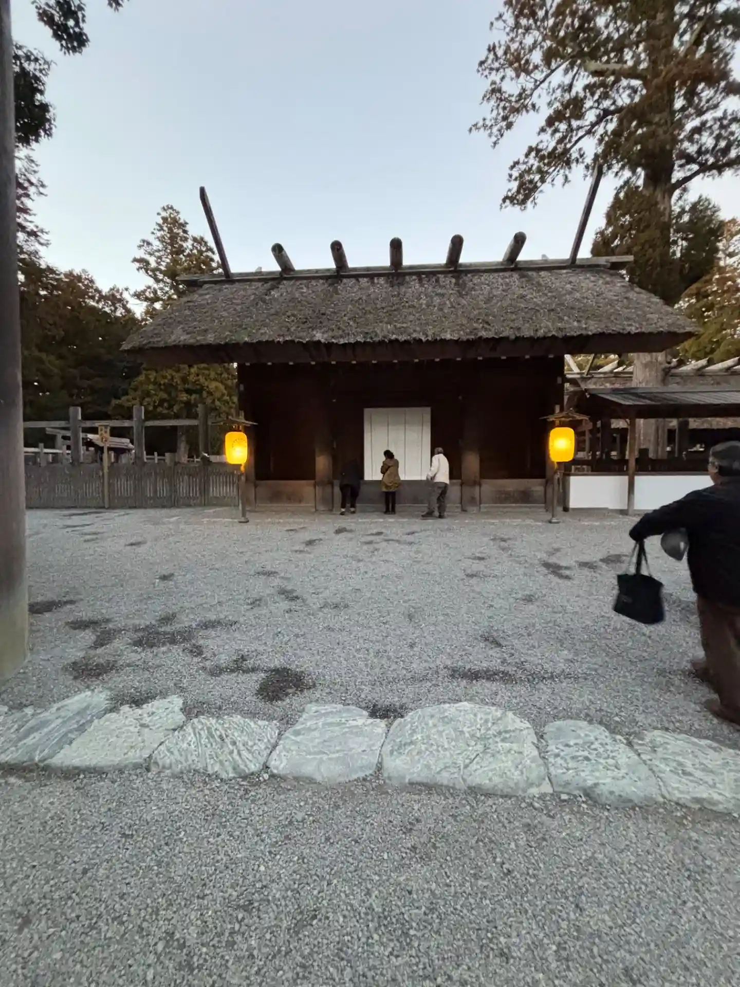 暗い中の参拝から夜明け。…