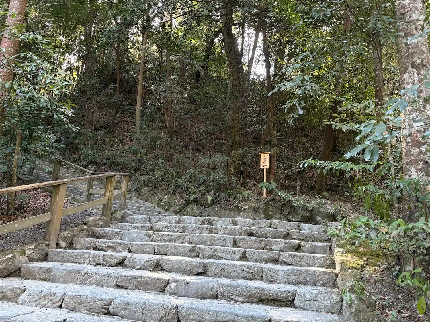 3つめの別宮・多賀宮は少し高いところにあるので階段を上ります。山の頂にあるので「高宮」とも呼ばれていました。