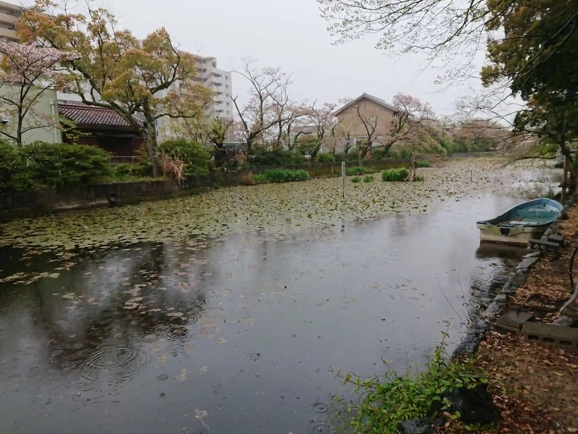 細長い池が印象的な場所です。