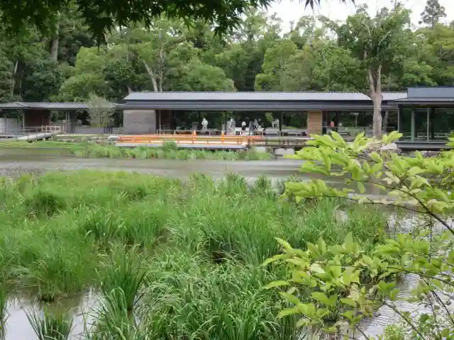 結婚記念日に2連休を取り、初日はお伊勢参りへ。茜社さんも初めてご参拝しました。茜社と書いて「あこねやしろ」と読みます。外宮さんの勾玉池に囲まれる形で鎮座してます。奥へ進むと外宮さんの「せんぐう館」の裏手が見れました。