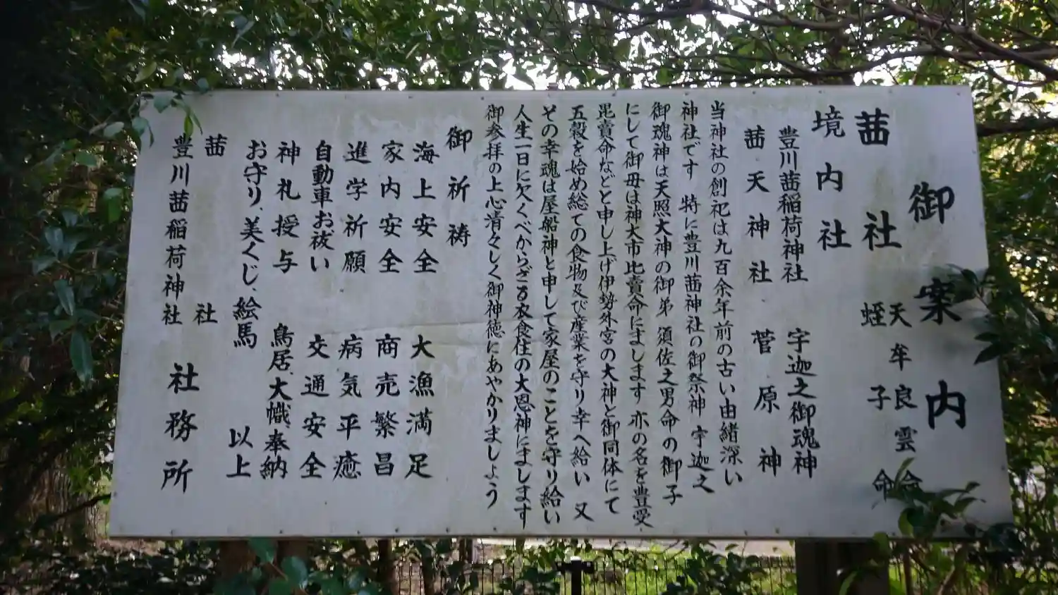 鳥居を抜けてすぐ右手に隠れるようにあった天神様の由緒書き