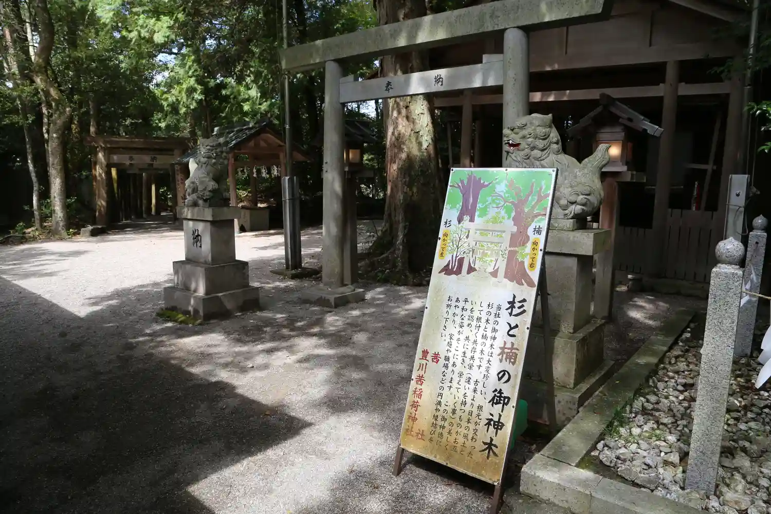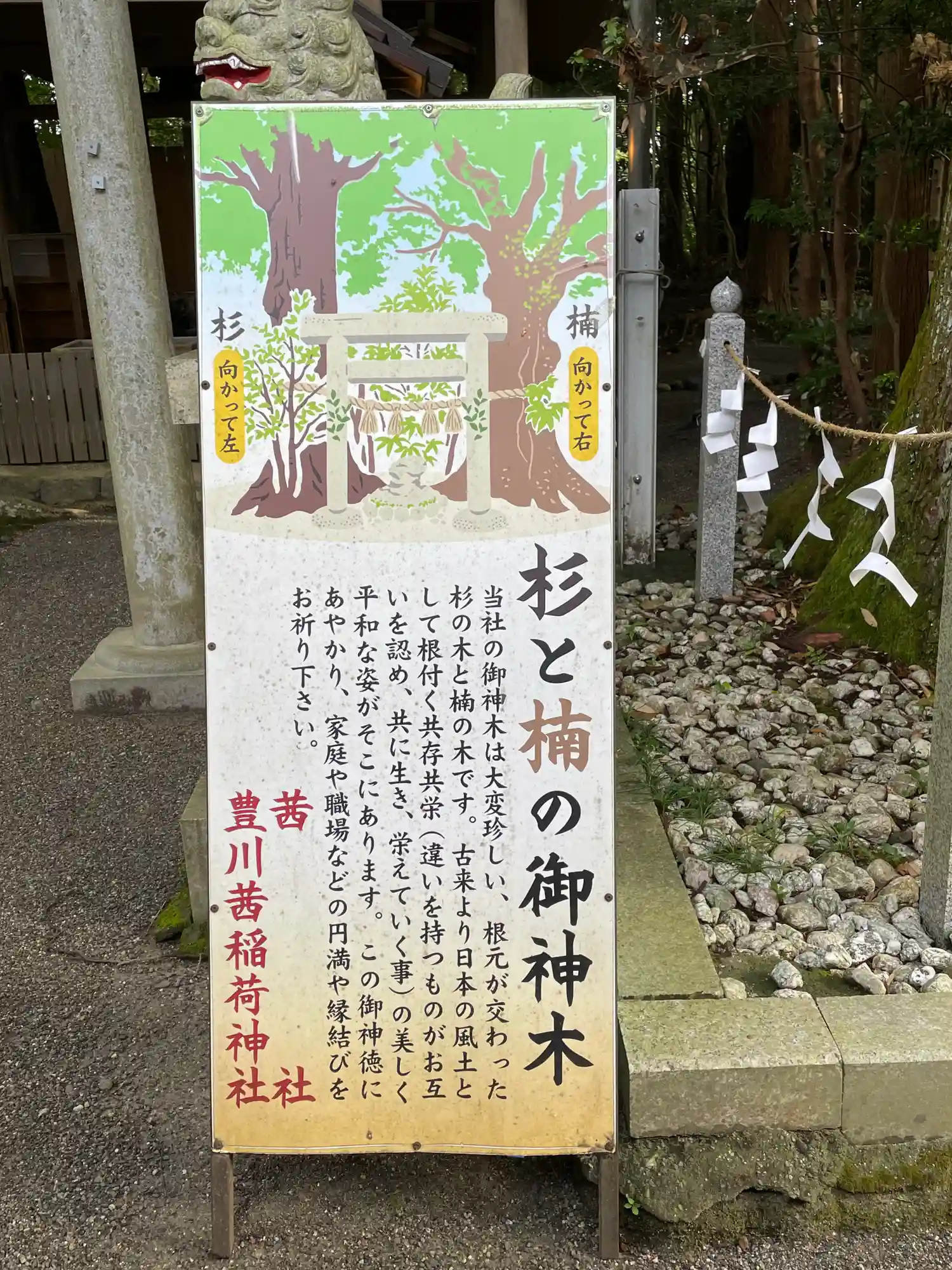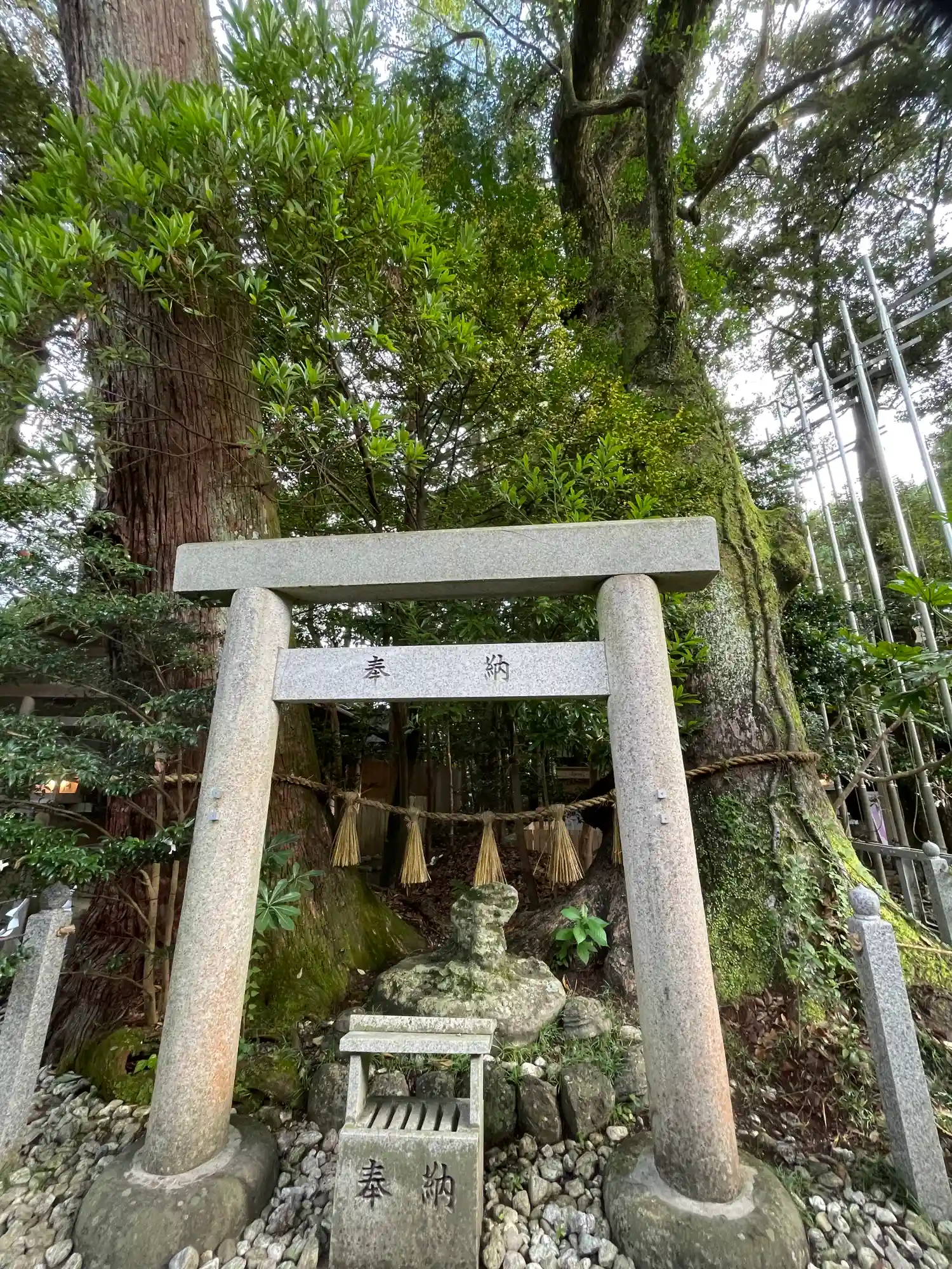 楠と杉が根のところで一緒になった楠と杉の御神木が神秘的で…