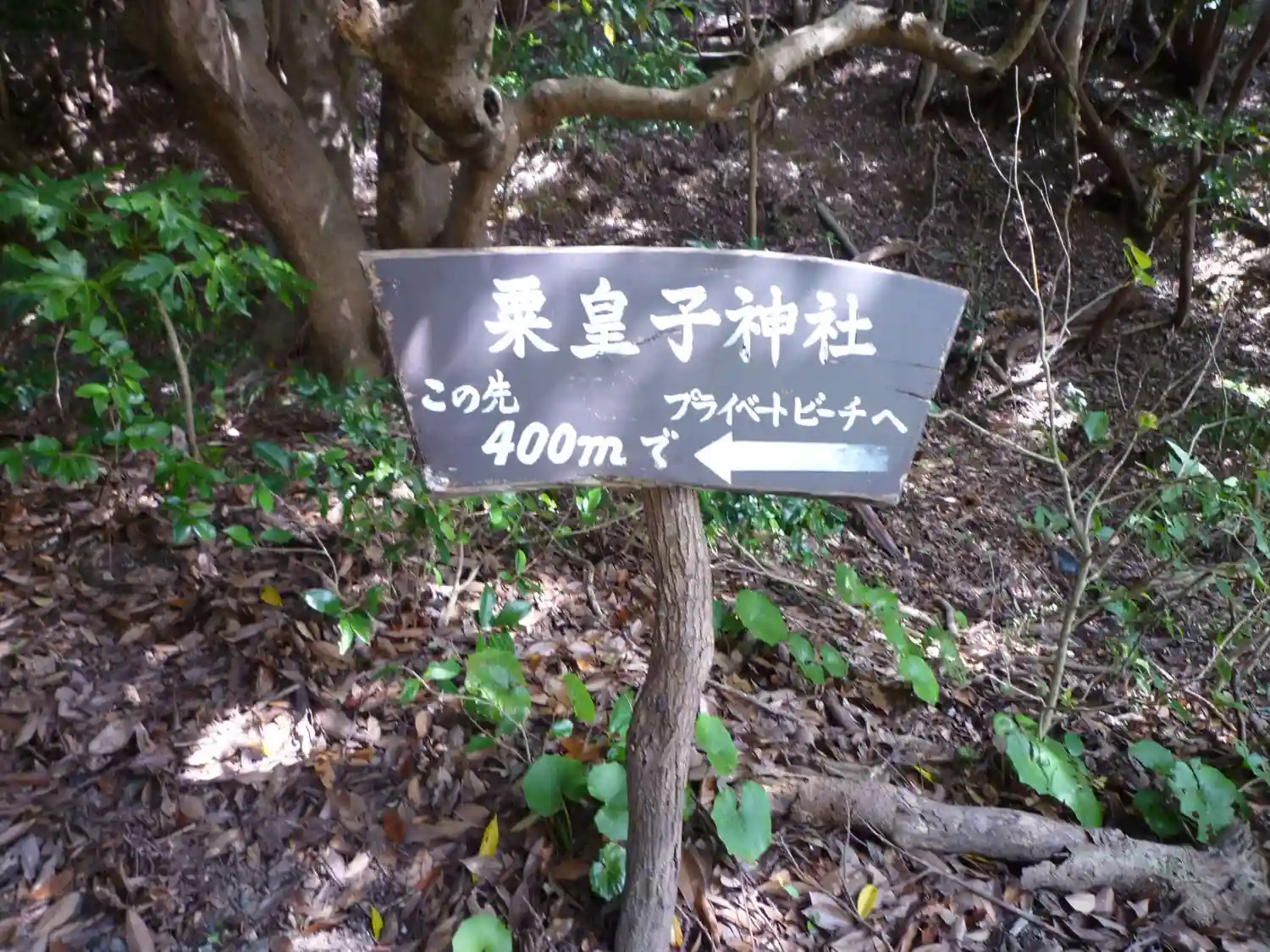 | 行き方 | 粟皇子神社はホテル「旅荘 海の蝶」の敷地内にあり、ホテルのフロントで一声かけると、敷地内を通って神社へ行くことができる.