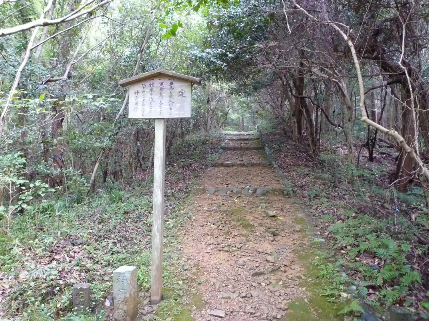 伊勢神宮125社の中では、鴨神社に次ぐ2番目の難所と言われています。日の出橋交差点から東進し未舗装…