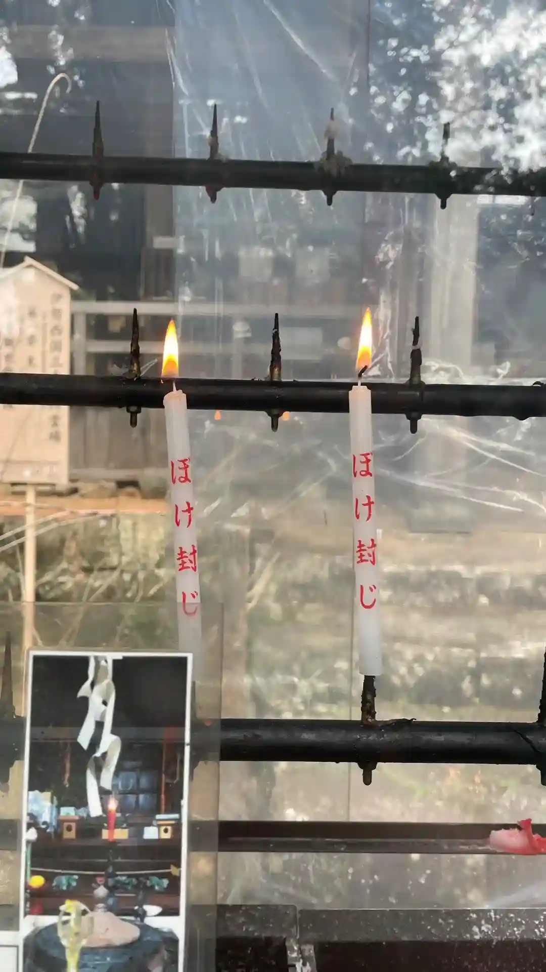 境内に鳥居のお社があり、神鏡をお祀りしています。神仏習合の名残?
