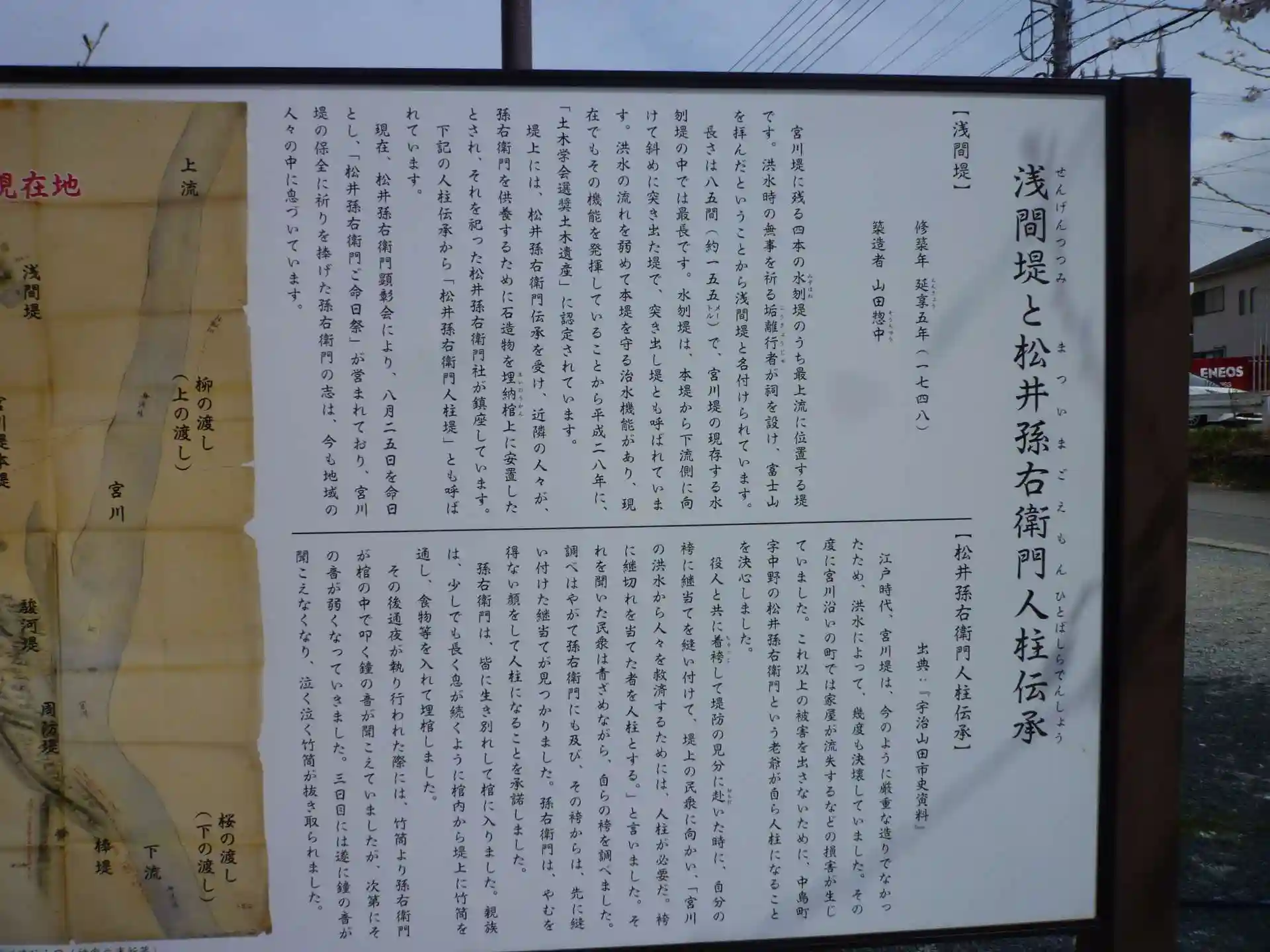 浅間堤と松井孫右衛門人柱伝承の説明板