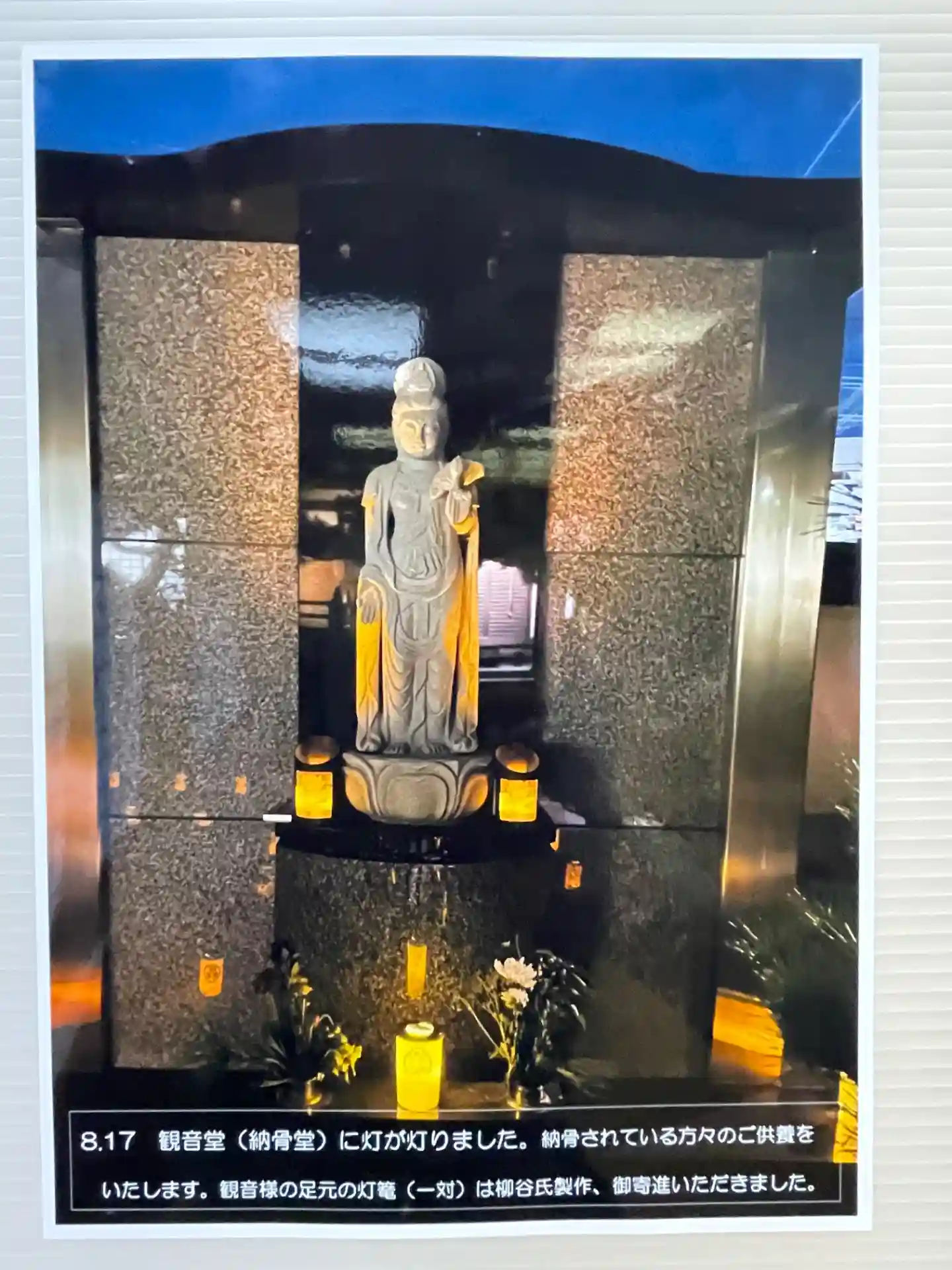 観音さまの足元の燈籠は、お世話人さんが製作、寄進くださいました。