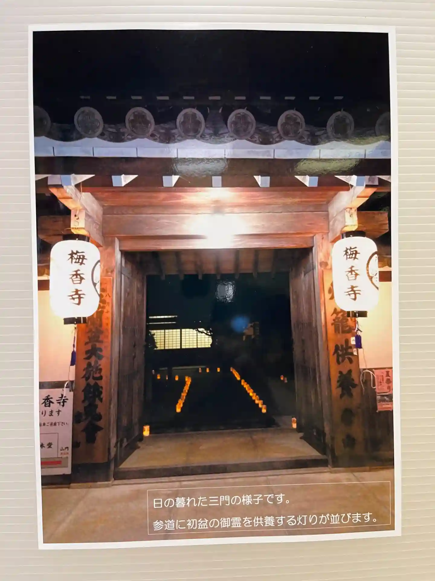 三門には、梅香寺の提灯を掲げます