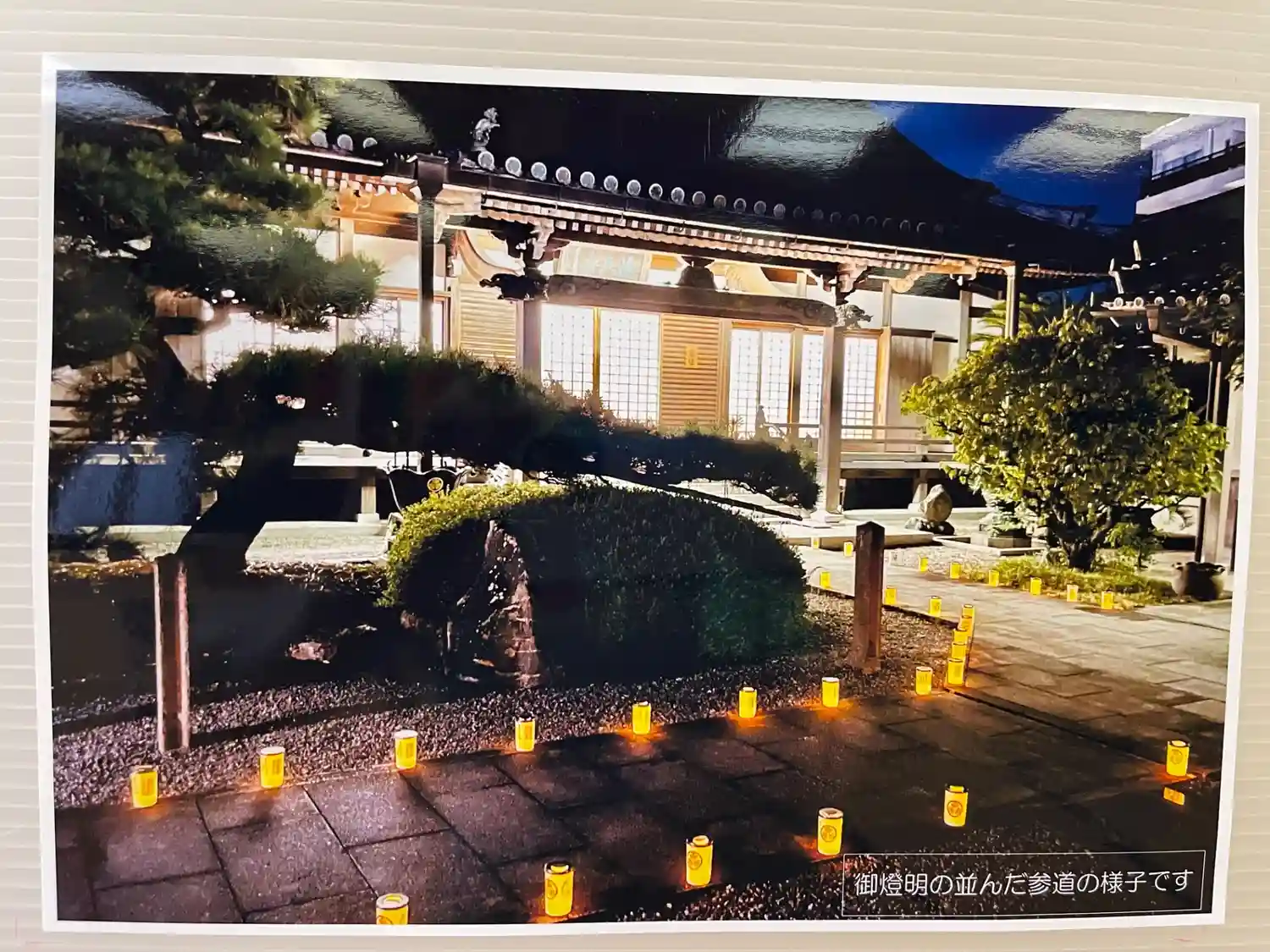 本堂から永代供養塔への参道も灯します