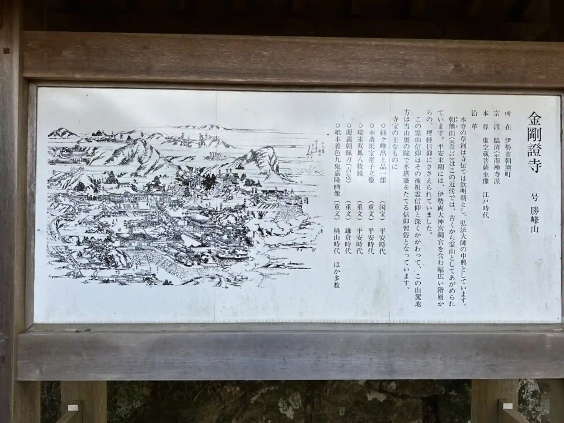 昔より伊勢神宮の鬼門を守る寺として、神宮の奥の院ともいわれ「お伊勢の帰りに朝熊をかけよ、朝熊かけねば片参宮」と伊勢音頭にも唄われ、参宮する人々は当寺に参詣するのが常でありました。