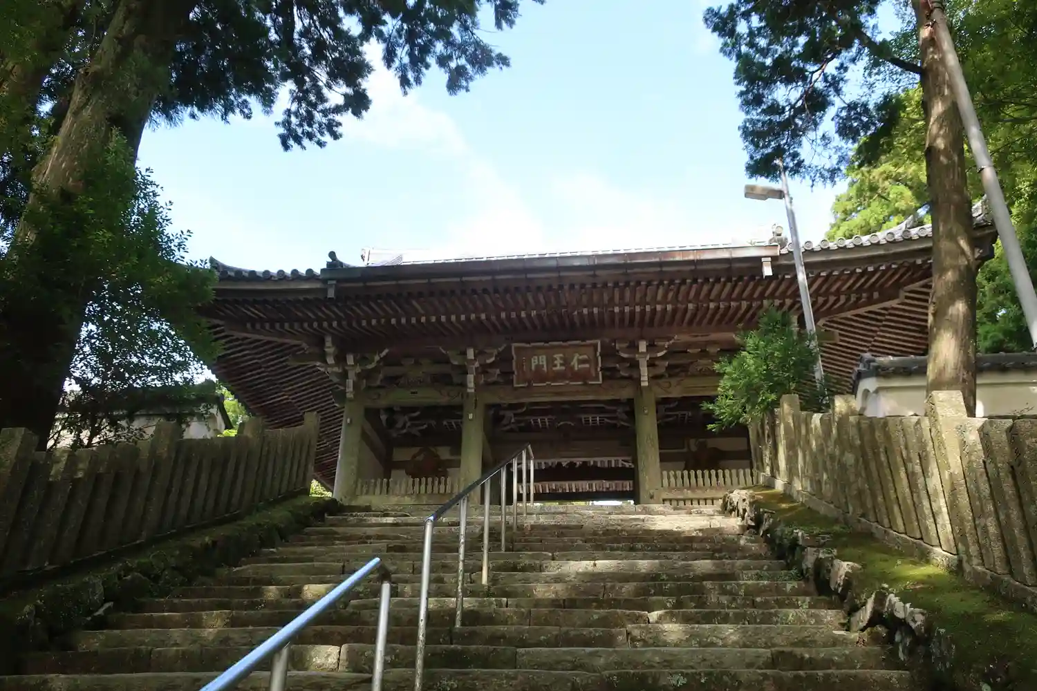 境内南端入口から、階段上にある<仁王門>を見上げる。