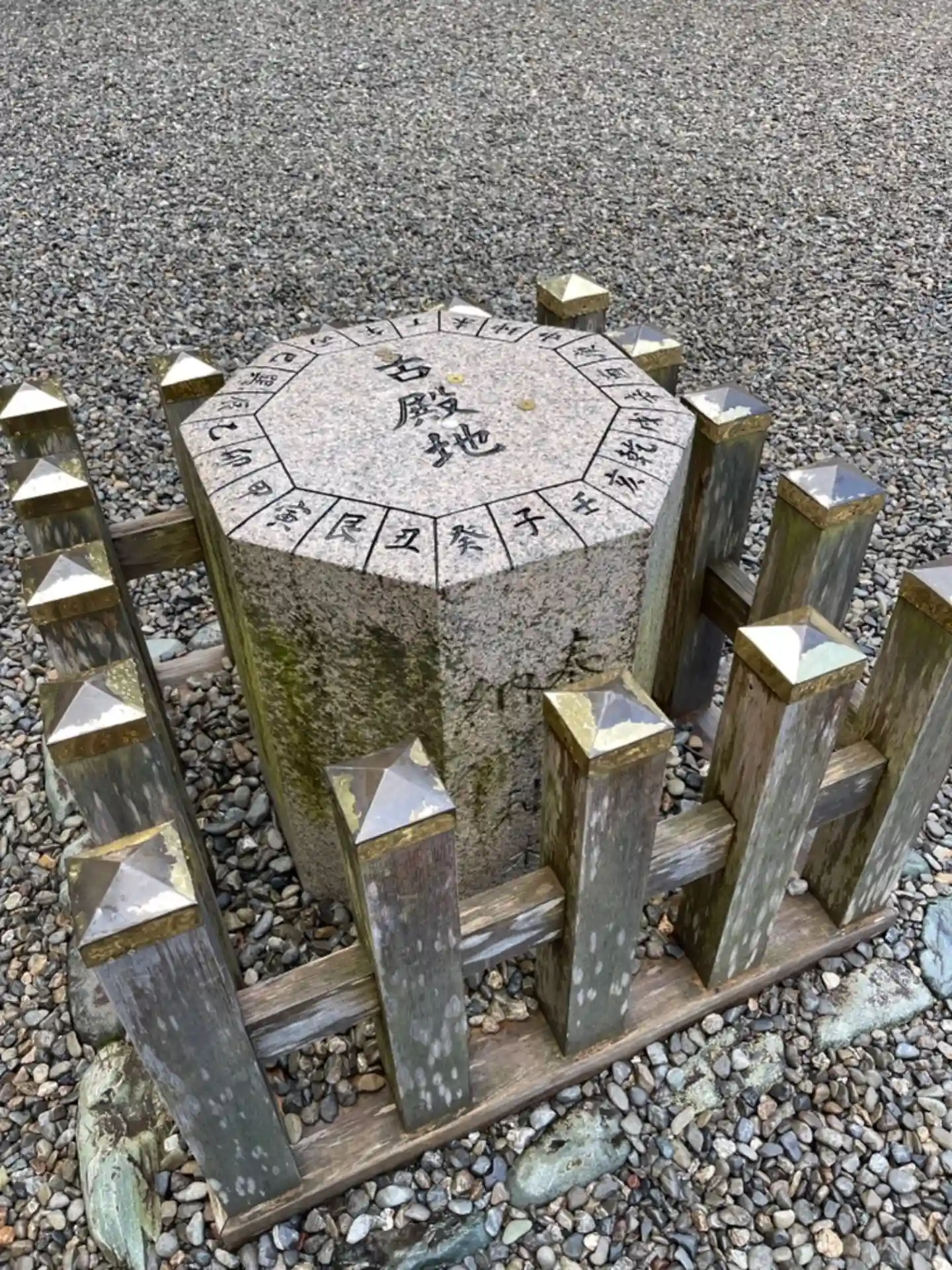 拝殿前には、特徴的なた八角形の石(方位石=古殿地)があります。この位置にかつては本殿があったとのことです。子供達がその周りを走り回って賑やかでした。